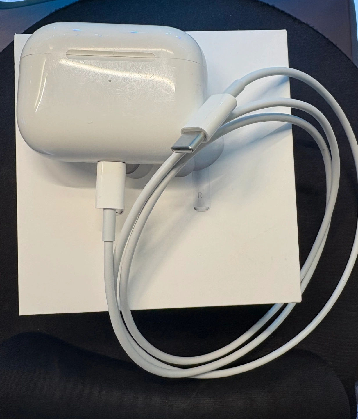 Used Apple AirPods Pro. Includes a charging case and never used extra ear tips. Comes in original case and a charging cable.