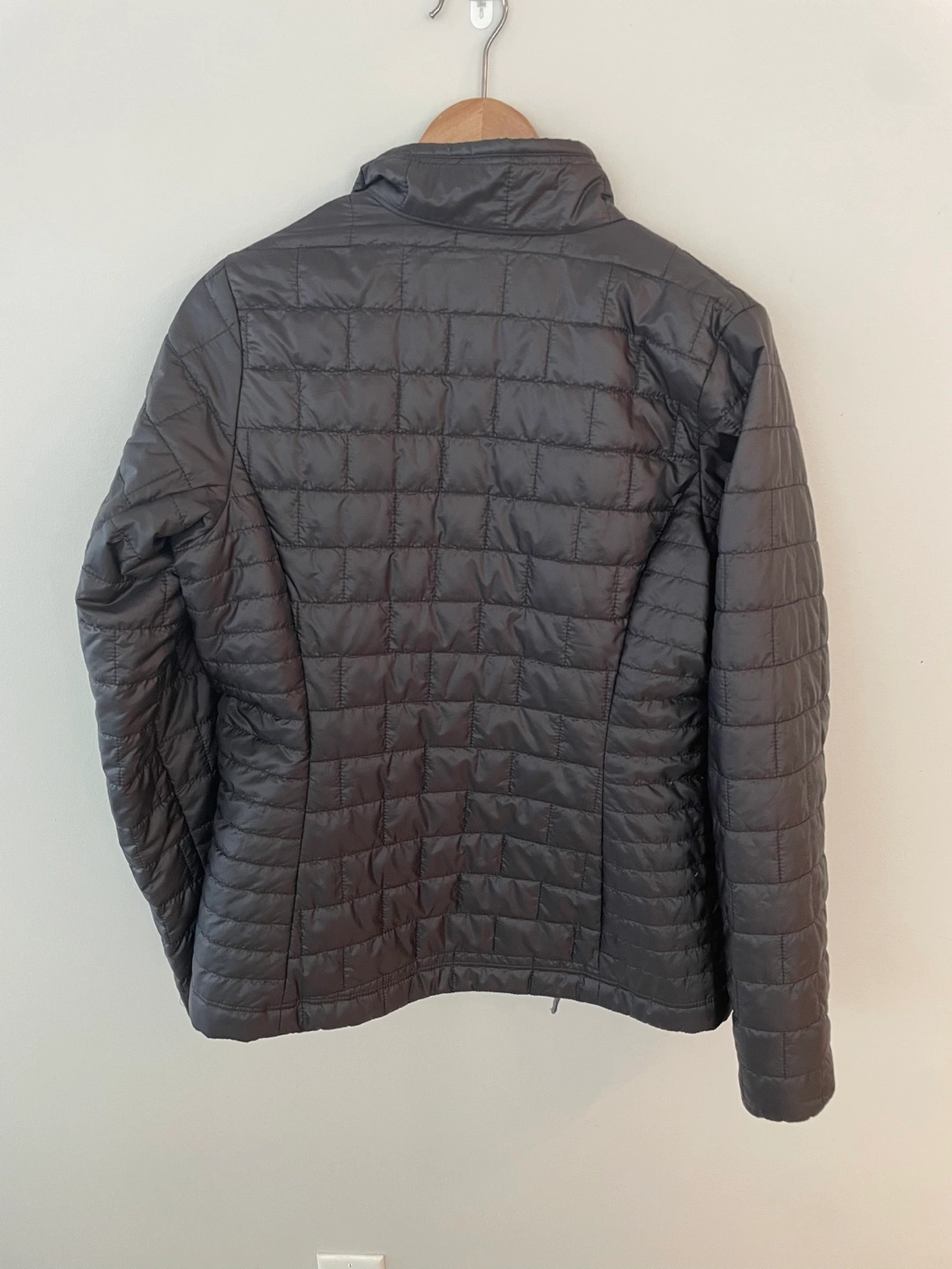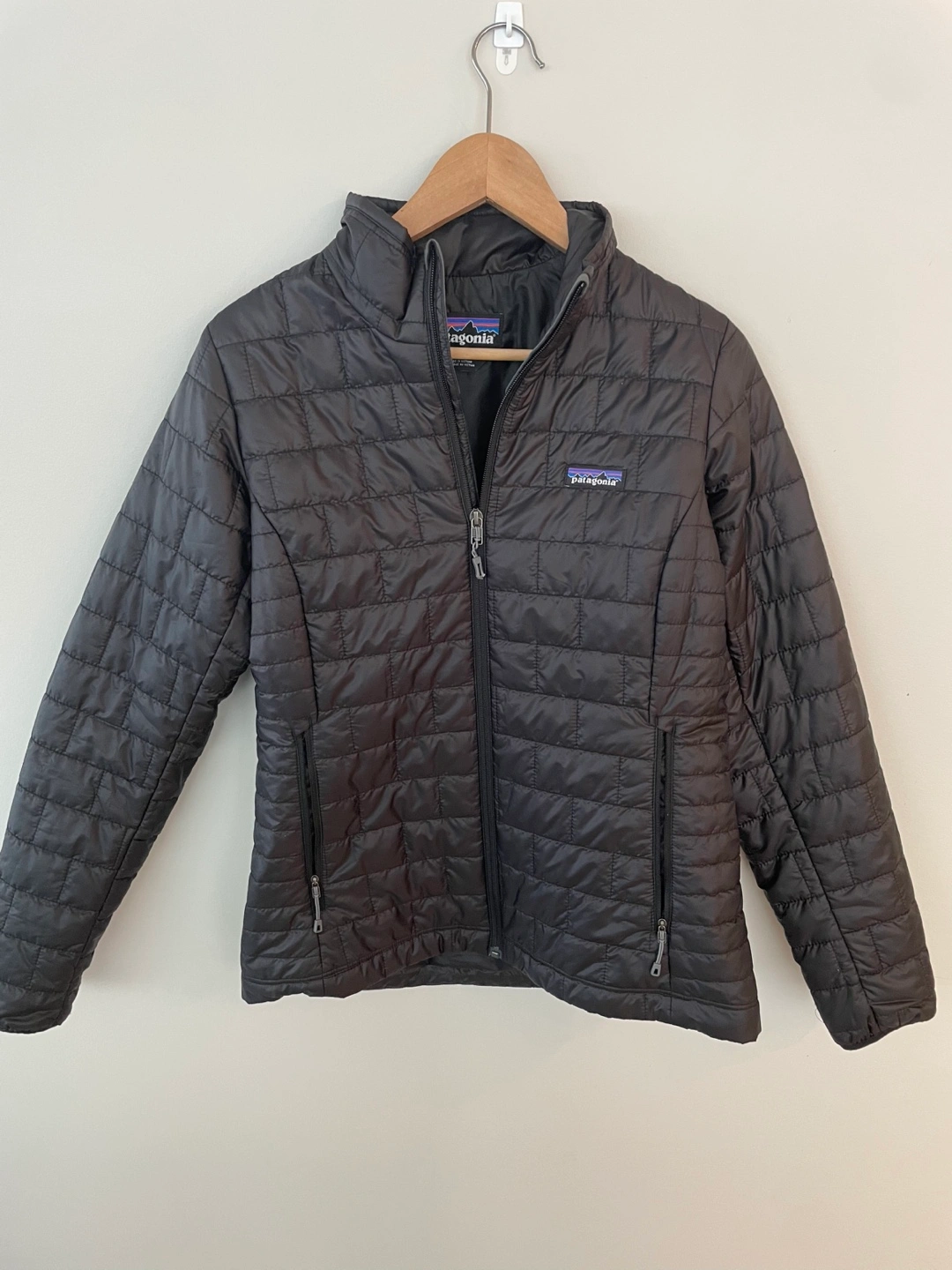 Women's black quilted Patagonia jacket.