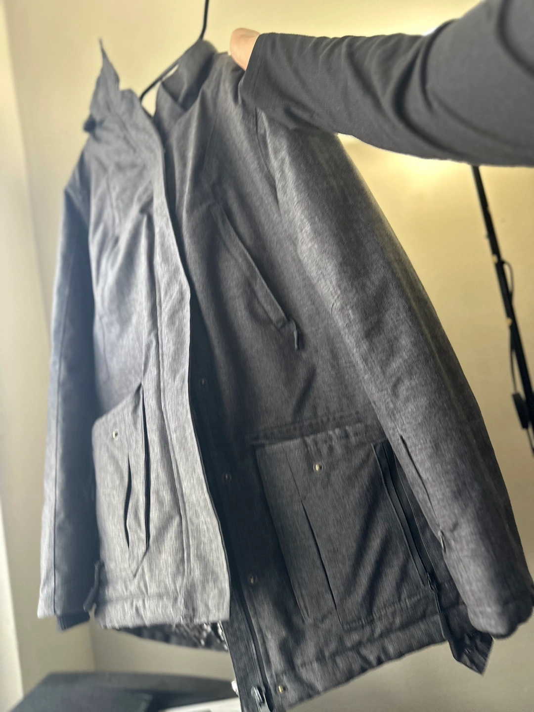 Woman New Winter jacket. Grey, hooded. Multiple pockets. Size medium. Made in China.