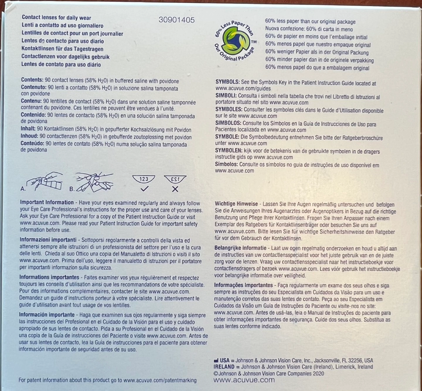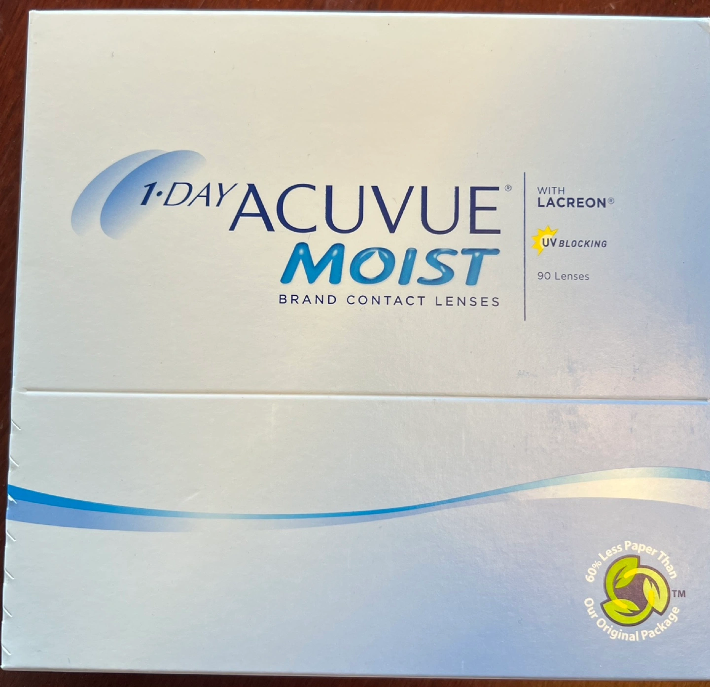 1 Day Acuvue Moist 90 Pack Contact Lenses are a convenient way to wear your contacts — just wear them one day and throw them away! A breakthrough in daily disposable contacts, 77% of wearers report that these contact lenses "felt fresh and new all day long". Enjoy the feeling of a fresh, clean contact lens every day with 1 Day Acuvue Moist 90 Pack from Johnson and Johnson.