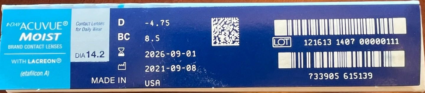 1•Day Acuvue Moist Contact Lenses 90 days box -4.75