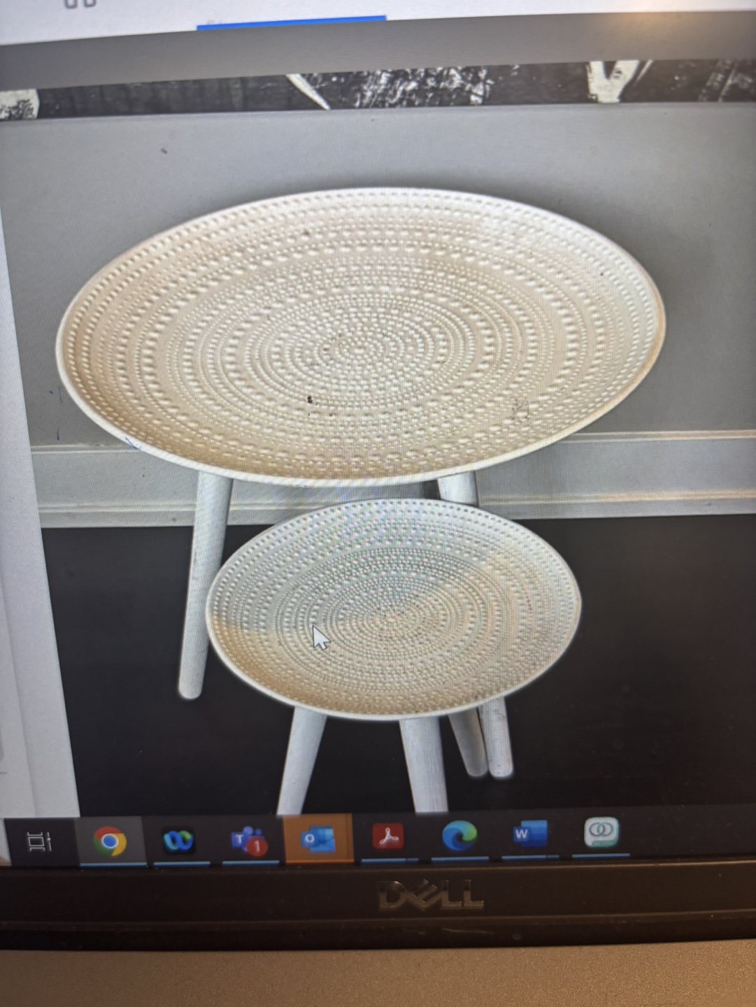 1 / 11 / 1Buy & SellSet of Two White Nest TablesSet of Two White Nest Tables$120Unique set of two nesting tables. White finish. Circular tops with textured design. Simple wooden legs.WHERE TO MEETCheck LocationView MapSELLERAhjThe Beaches777 reviews0 chats·0 favorites·21 viewsSEND CHAT TO SELLERHi Ahj! I’m interested in your listing.Hi Ahj! I’m interested in your listing.Get the Karrot app to chatSign In to chat