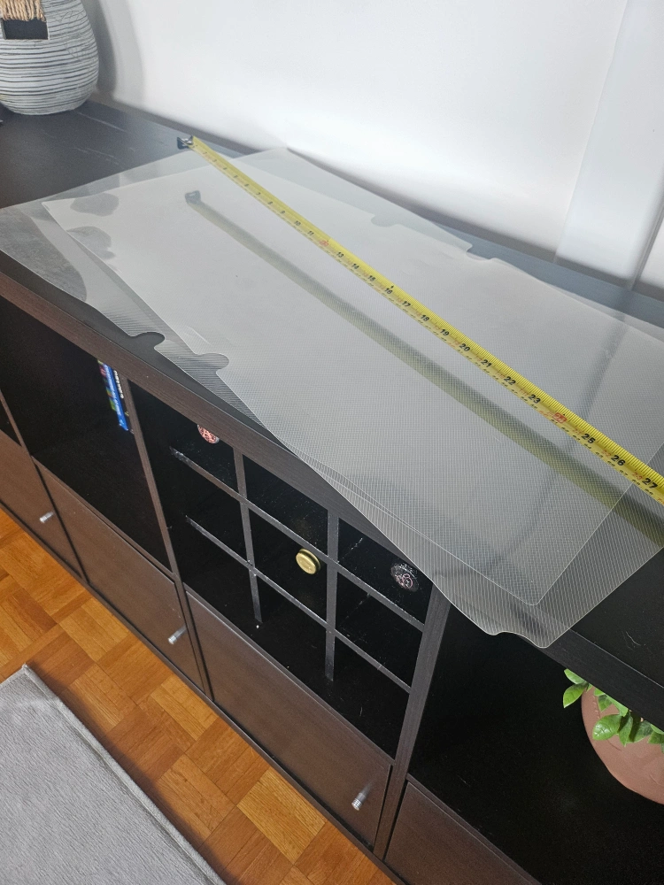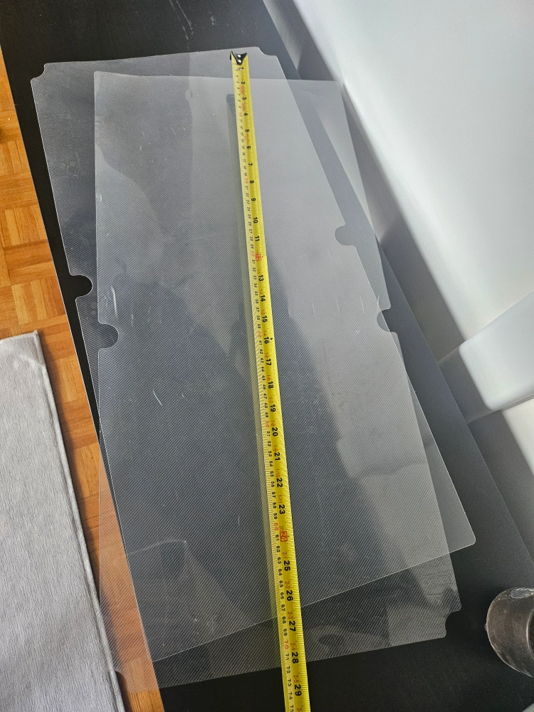 133Two clear plastic desk protectors. Approximately 28 inches long. Prevents scratches and damage to furniture. Great for home or office use.