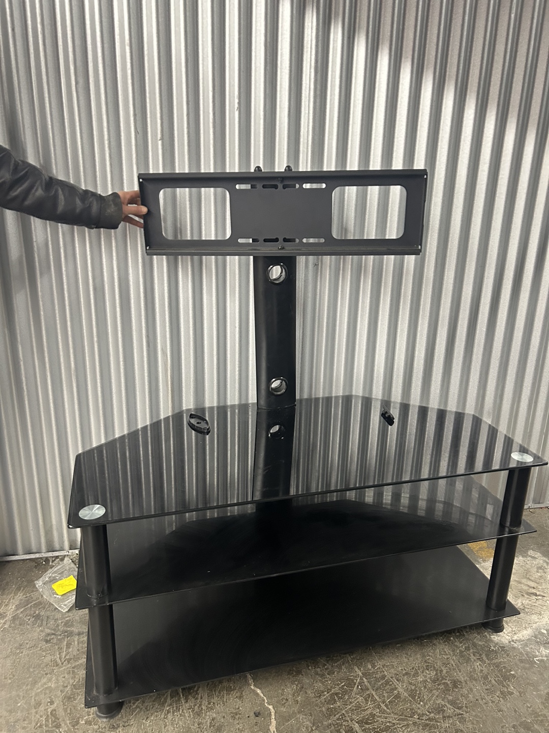 1 / 11 / 1Buy & SellBlack Glass Corner TV Stand with MountBlack Glass Corner TV Stand with Mount$50Corner TV stand. Three shelves. Black glass top and shelves. Black metal frame. Includes TV mount.WHERE TO MEETCheck LocationView MapSELLERrubyWestdale N684 reviews1 chats·1 favorites·18 viewsSEND CHAT TO SELLERHi ruby! I’m interested in your listing.Hi ruby! I’m interested in your listing.Get the Karrot app to chatSign In to chat