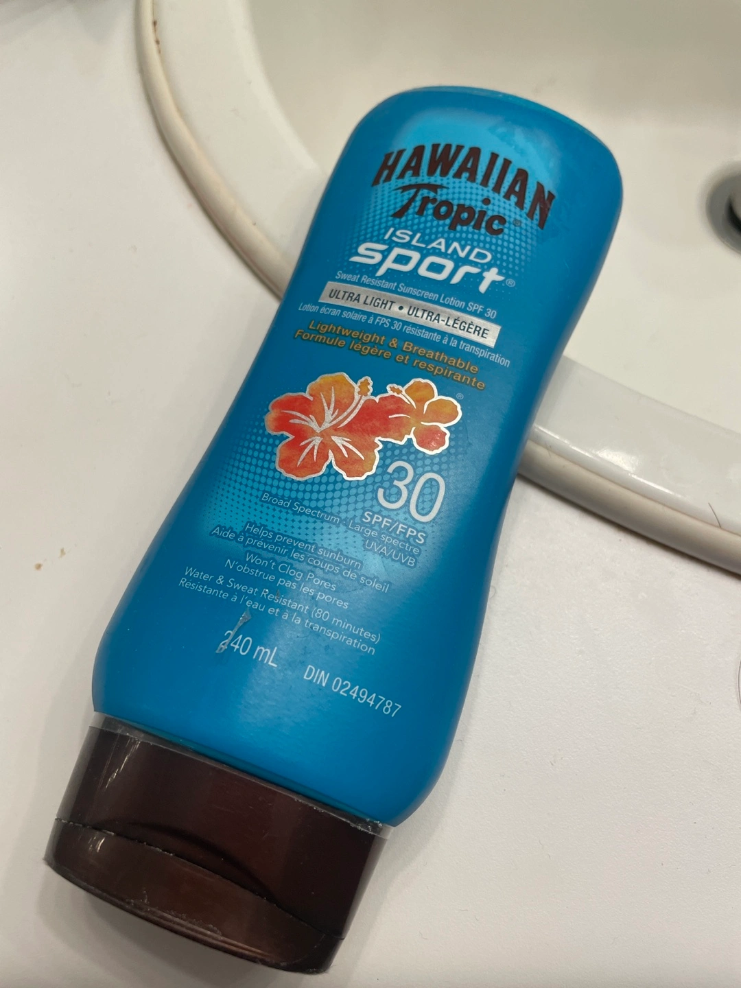 240ml bottle of sweat-resistant sunscreen. Lightweight and breathable formula. Broad spectrum UVA/UVB protection.