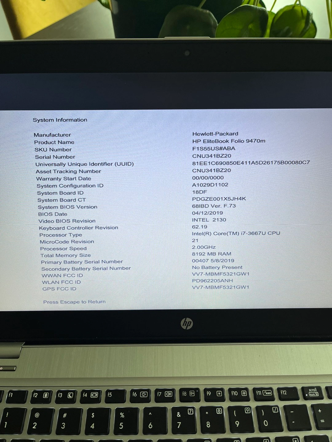 HP Elitebook Folio 9470m Laptop / Ultrabook 13” screen, 1366 X 768 Intel i7 3667U CPU - 2.50 GHz 8 GB RAM 240 GB hard drive storage (solid state) WiFi and Cellular (SIM Card) Windows 10 (reset to factory settings) Good Battery Health (98% original capacity) 3-4 hour battery life Includes AC power adapter / charger Webcam No HDMI Port 3 USB ports Ethernet port VGA and DisplayPort for video output (can use DisplayPort to HDMI cable if you want to hook up to a TV, sold separately) Great cosmetic condition Used and recently replaced battery 6 mo ago. Works great, wiped to factory settings. Have upgraded to a newer model. Happy to let you plug in, test, etc.