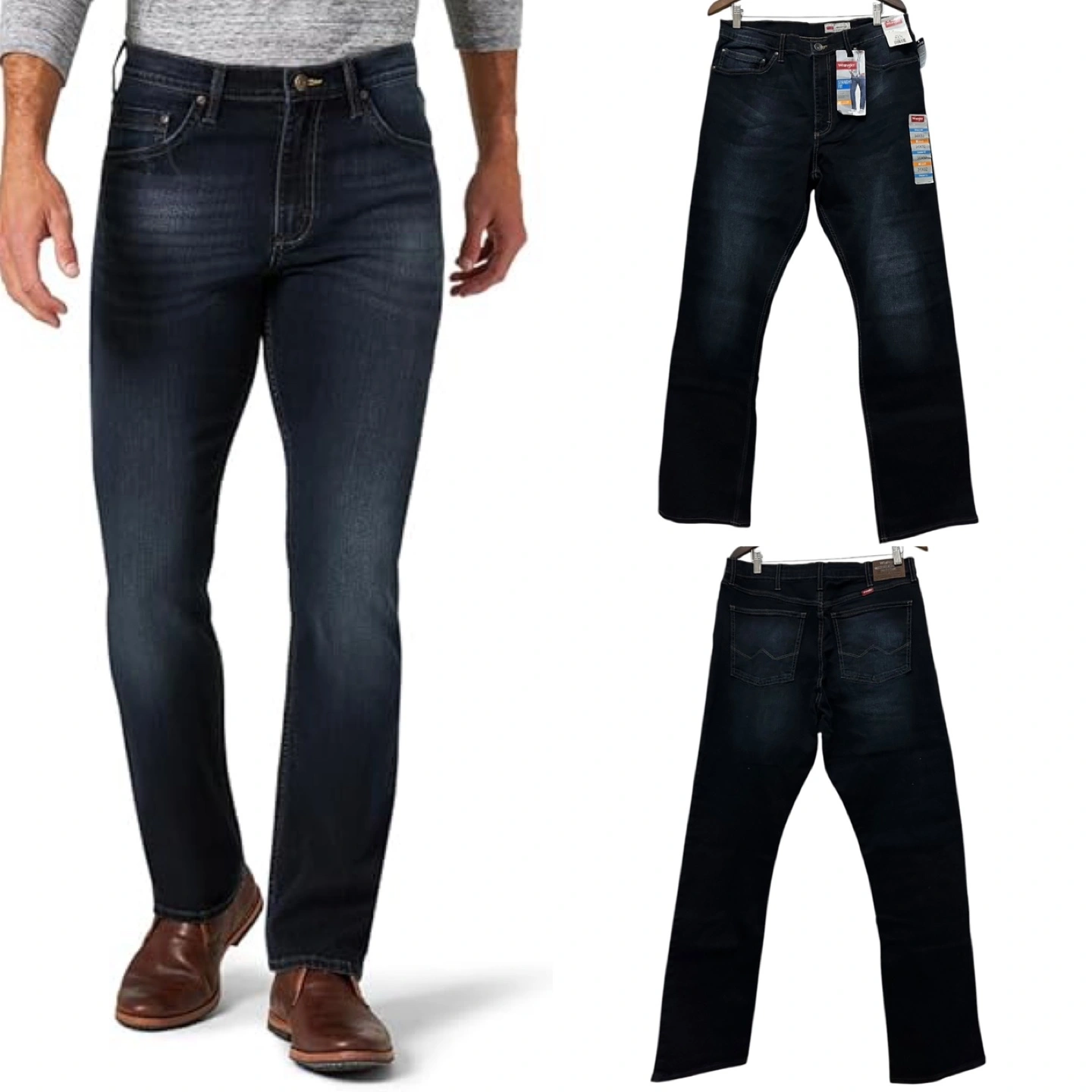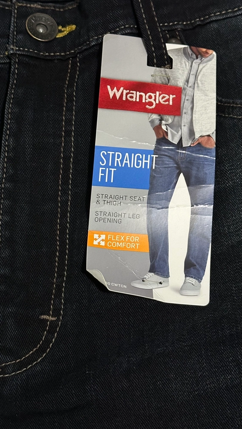 Wrangler men's jeans. Dark wash. Straight fit. Size 34x32. Flex for comfort. New with tags.