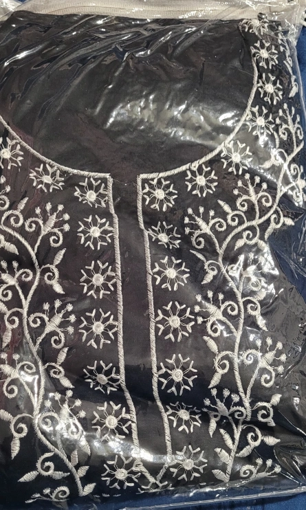 Beautiful black salwar kameez. Three-piece set includes kameez, salwar, and dupatta. Intricate embroidery detailing. Elegant and stylish. Suitable for various occasions.
