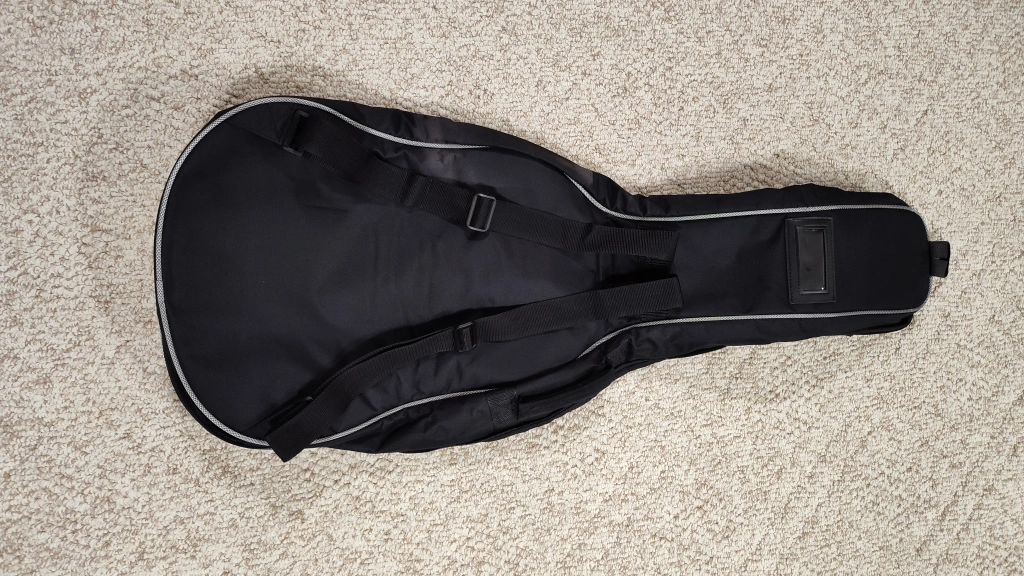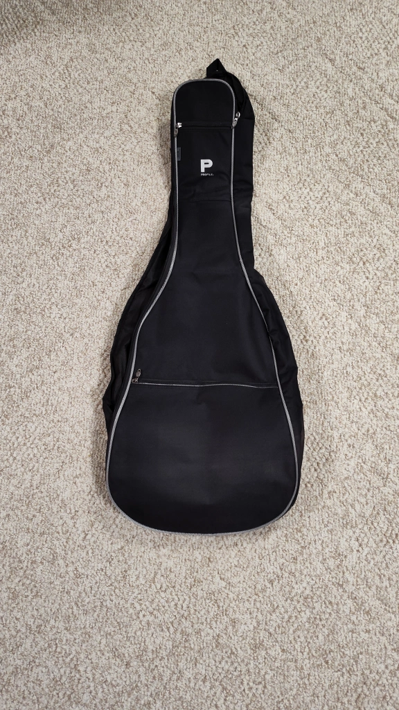 Brand new black guitar gig bag. Features adjustable shoulder straps and a zippered pocket. Good for transporting your instrument. It's never been used.