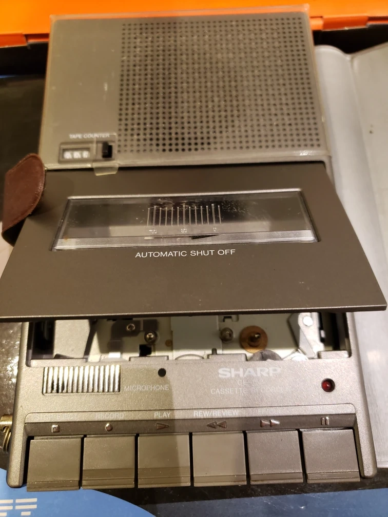 170Portable cassette player and recorder. Features include automatic shut off, microphone, and multiple playback options. Some wear and tear expected from age. Works with either batteries or compatible adapter. As is for parts. Needs maintenance as tapes are being chewed. make offer