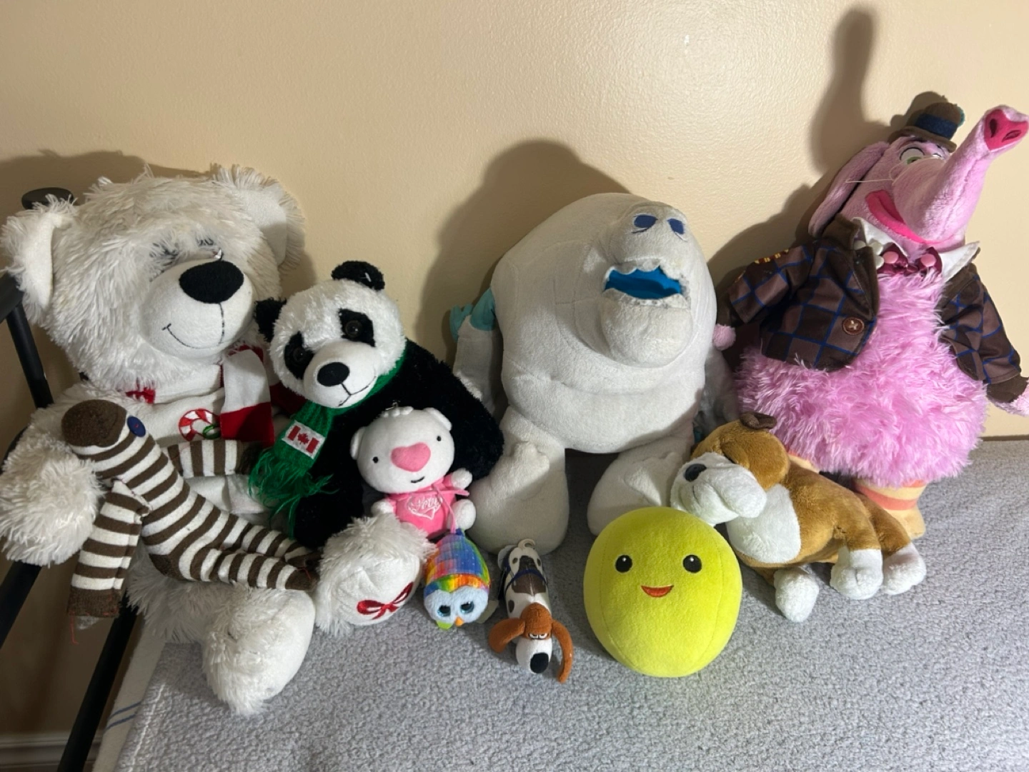 175Collection of 10 plush toys all for $5. Open for individual offers. Includes a large white bear, panda, small pink plush, snowman, pink elephant, bulldog, small owl, and bean. Great for collectors or children of all ages.