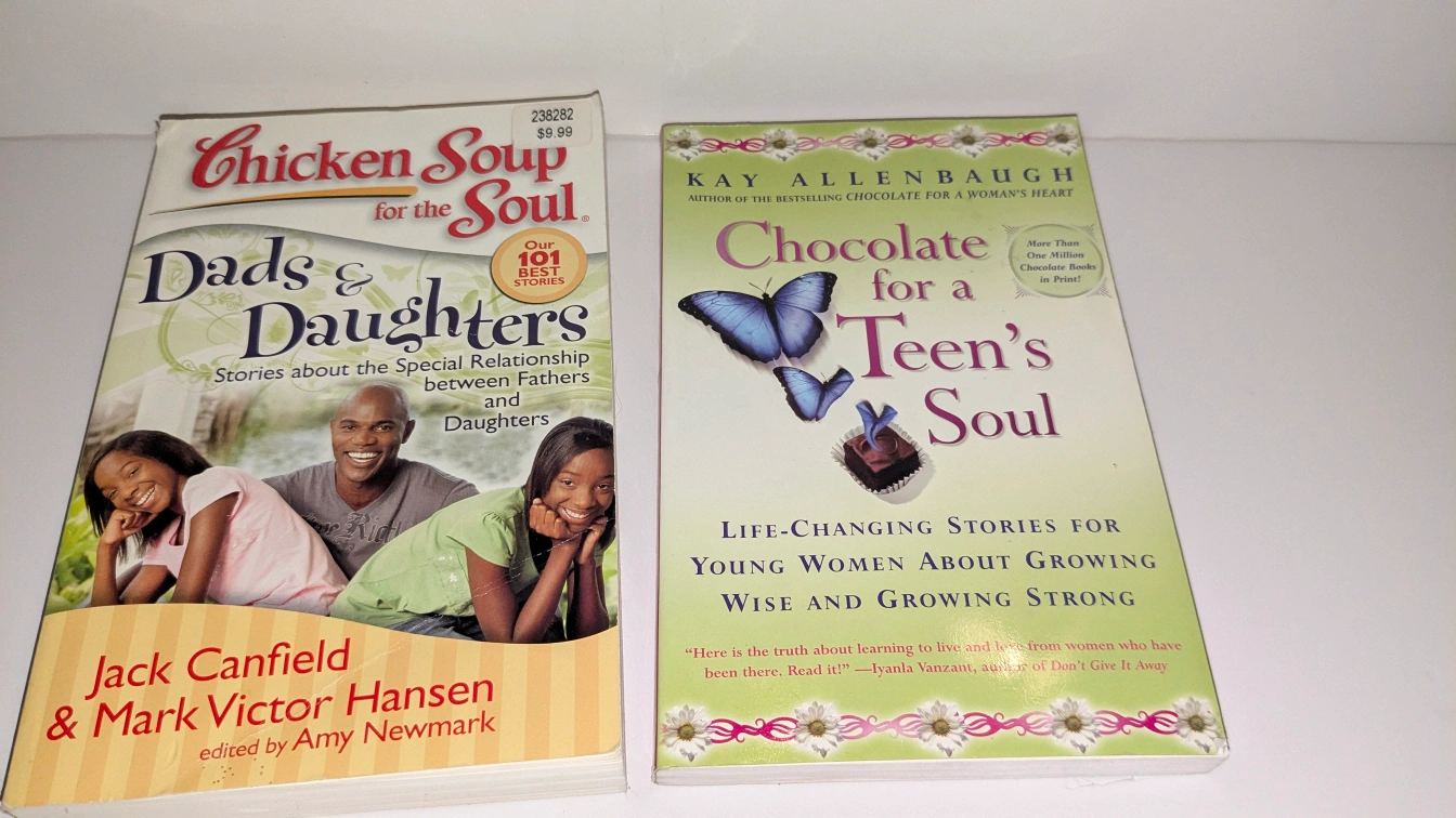 Two Chicken Soup for the Soul books. One features stories about the special relationship between fathers and daughters. The other offers life-changing stories for young women growing wise and strong.