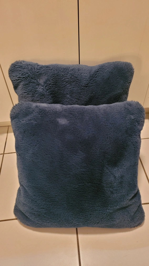 Pair of soft, plush teal throw pillows. Great for adding comfort and style to your living space. Machine washable for easy care.