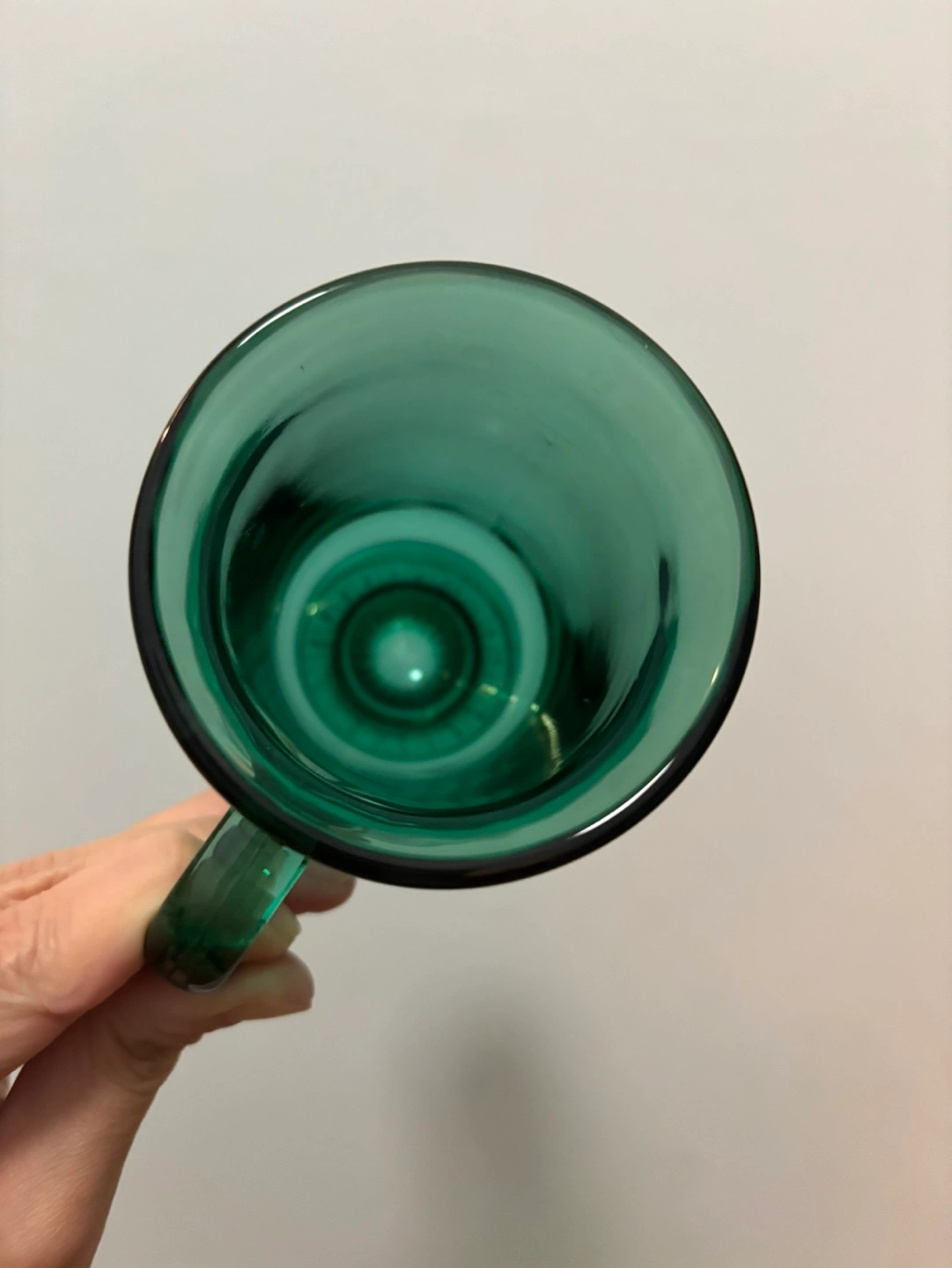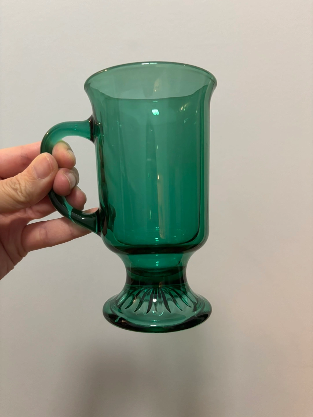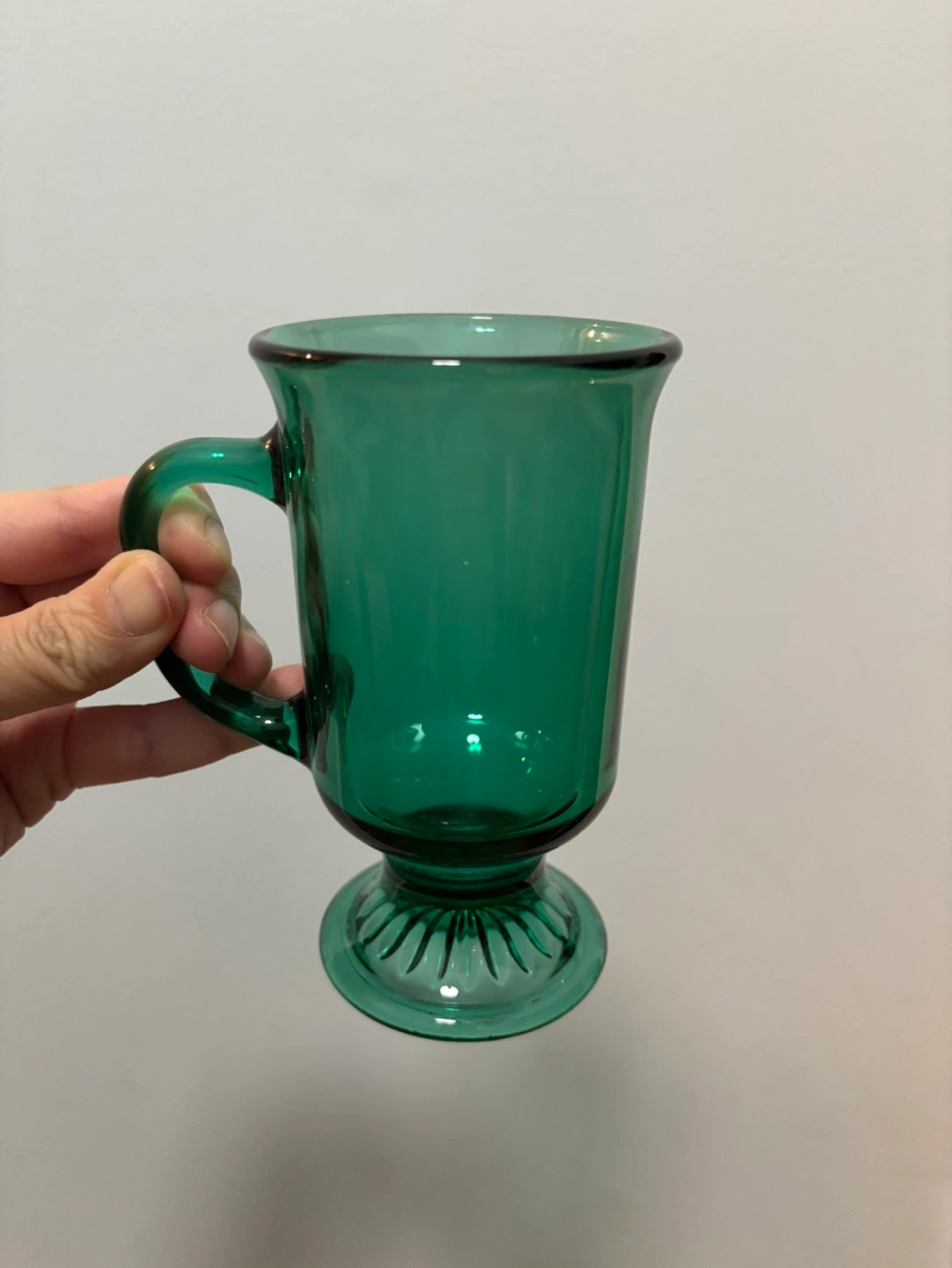 Pedestal mug. Dark green glass. Perfect for coffee or tea. Used condition. Anchor Hocking. Teardrop Juniper Libbey.