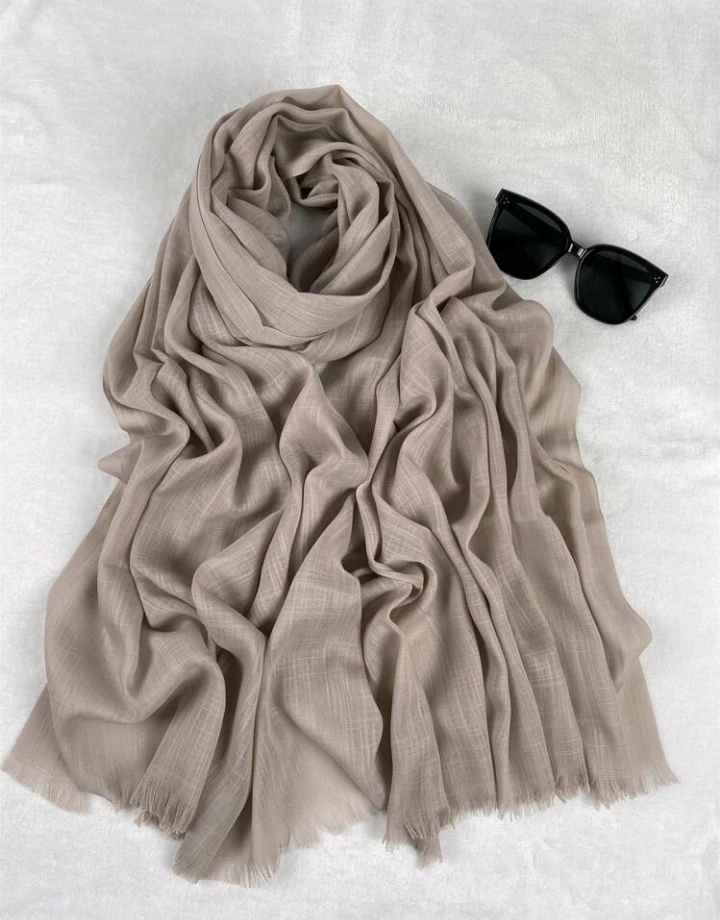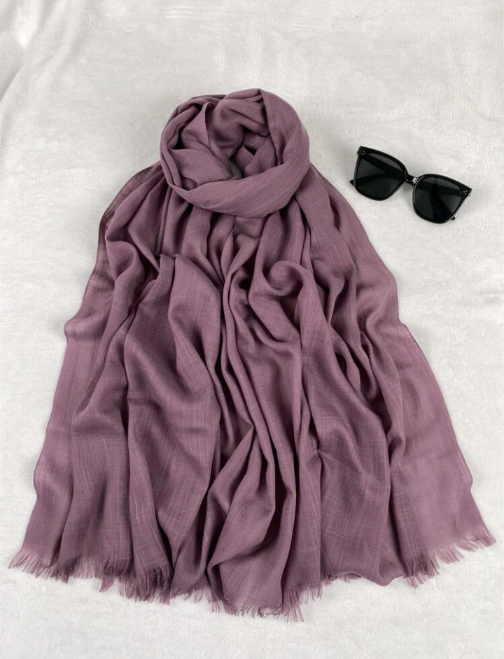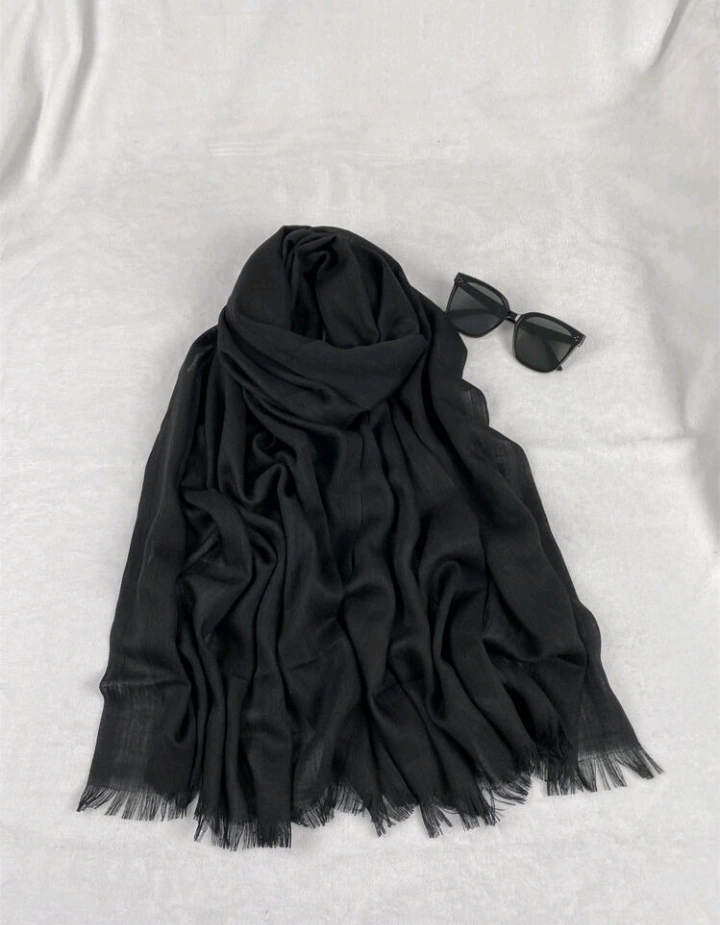 four scarves/ hijabs. Various colours available. Soft and lightweight material. Fringed edges. Perfect for spring and summer.