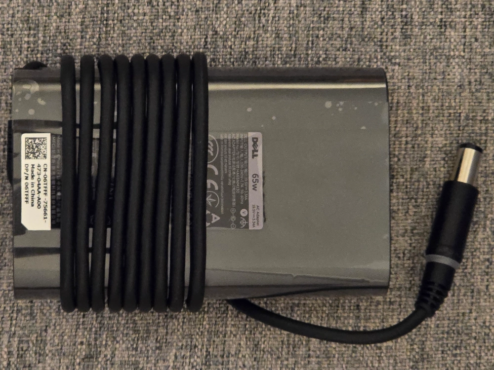 1000+Genuine Dell laptop power adapter. 65W output. Black. Brand new. Includes power cord.