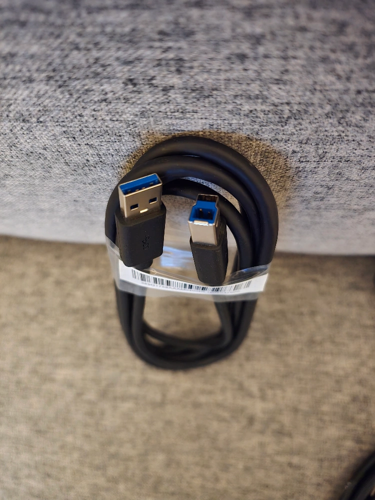 Two black USB cables. One end is USB-A, the other is USB-B. New, never used.