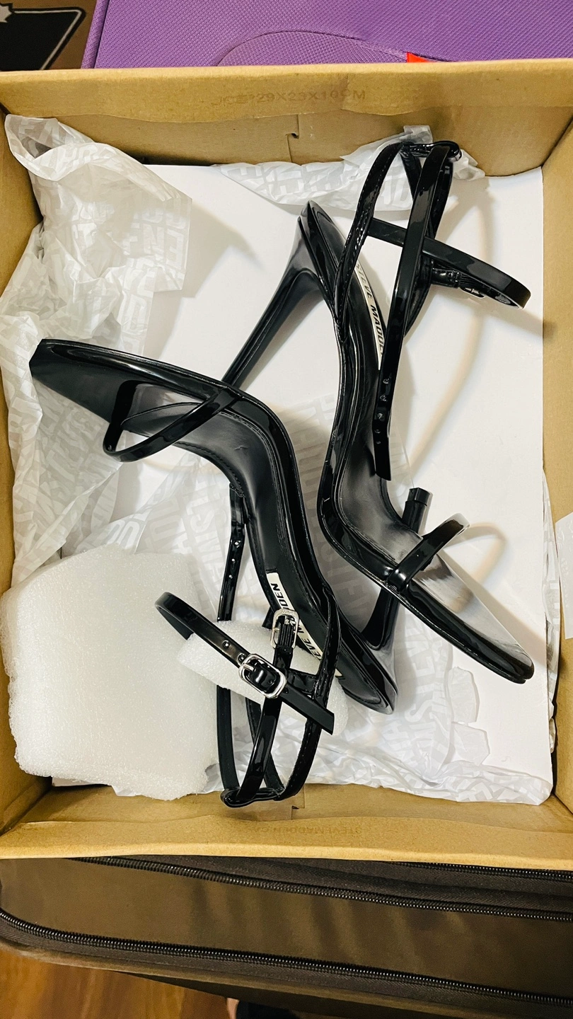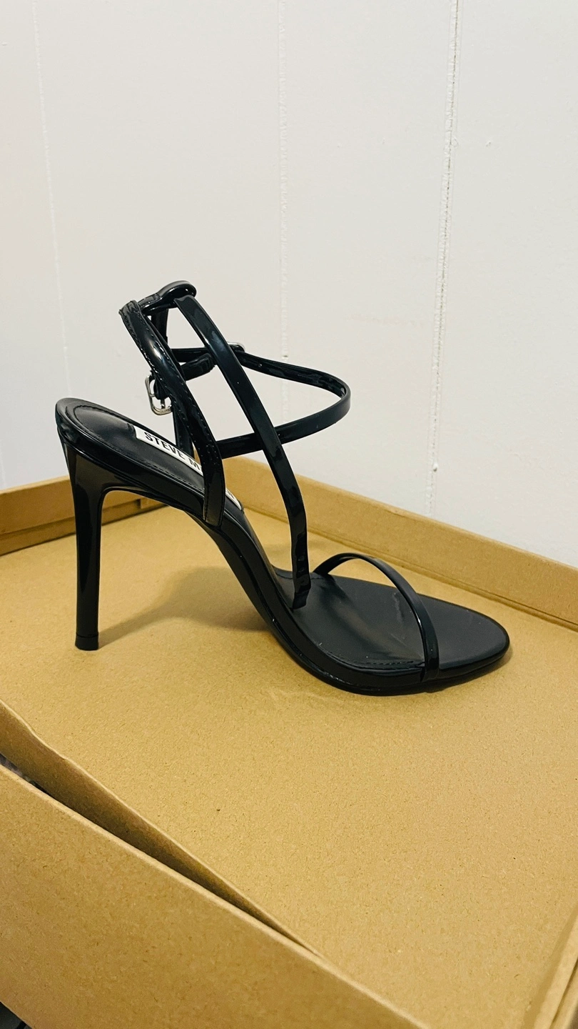 Gorgeous black patent leather Steve Madden heels. Minimalist design, ankle strap closure. Excellent condition, never worn. It's brand new with the box. Made in China. Perfect for your special occasion - weddings, graduation, prom.