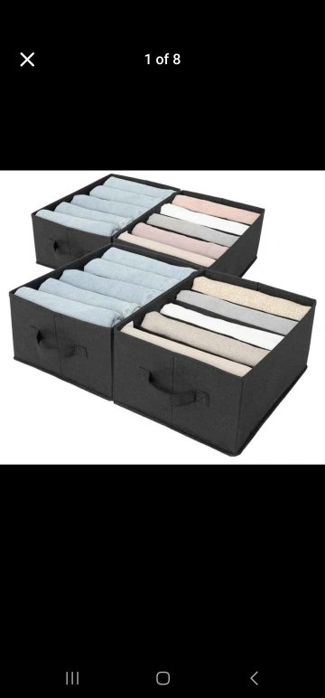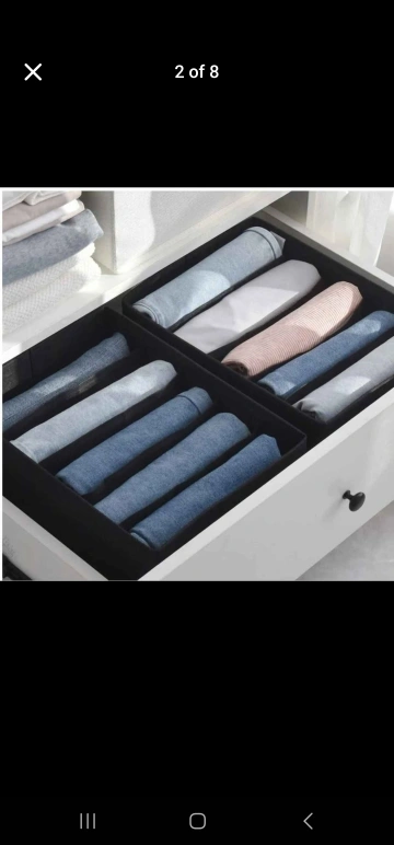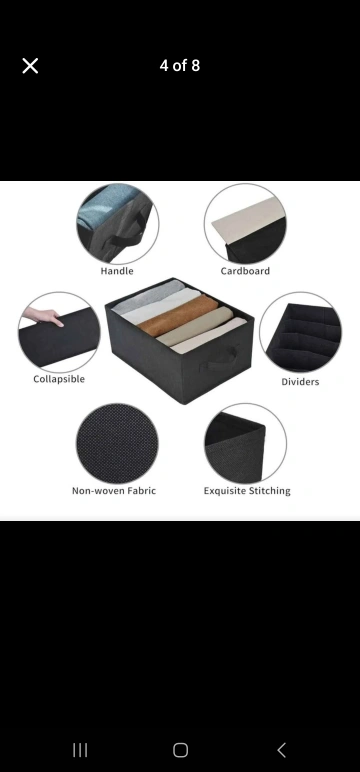 87Black fabric drawer organizers. Collapsible design. Includes dividers. Perfect for clothing storage. Durable non-woven fabric. Easy to clean.