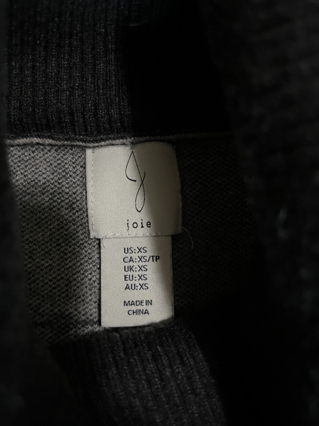 Beautiful Joie women’s extra small cowl neck sweater in charcoal and grey Fair Isle. Excellent condition, soft knit, machine washable. 50% rayon, 30% polyester, 20% nylon. From a smoke free home. Premium designer brand. Originally $260.