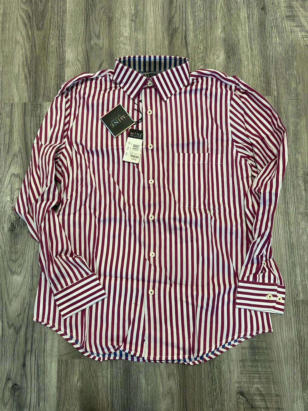 Men's long-sleeve button-down shirt. Maroon and white vertical stripes. Neat and stylish. New with tags. Size medium.