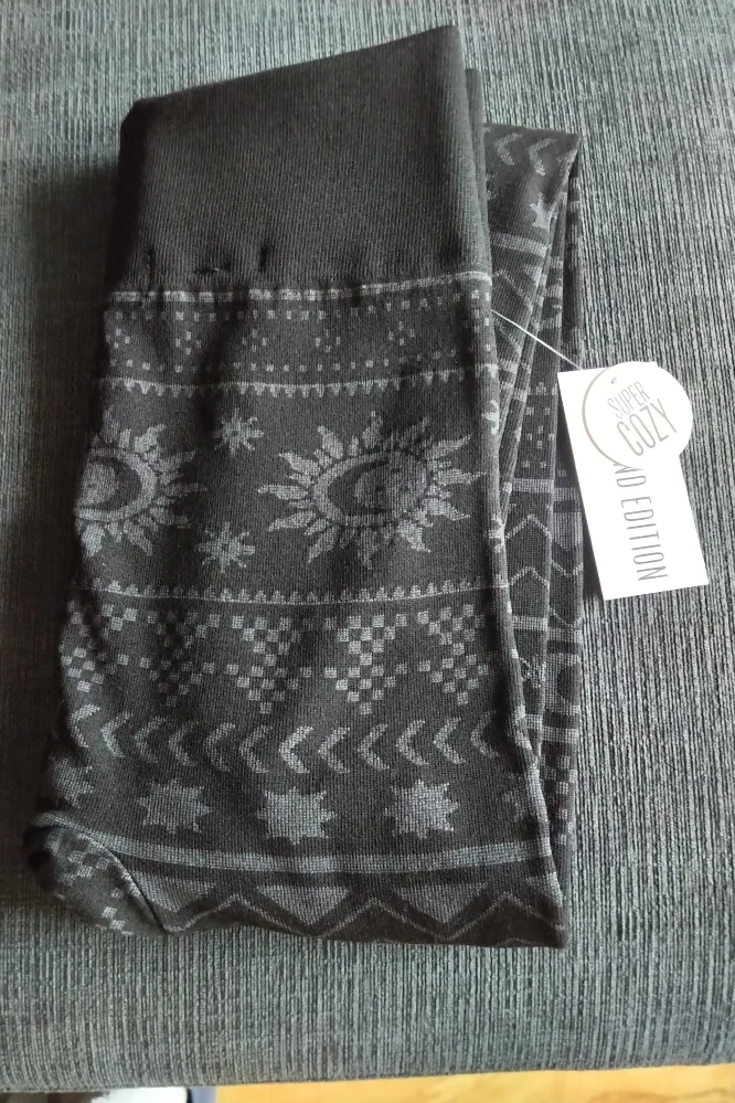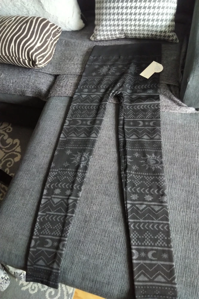 New with tags, fleece-lined leggings. Dark grey with a fair isle-inspired pattern. Size small/medium. Super cozy and warm.