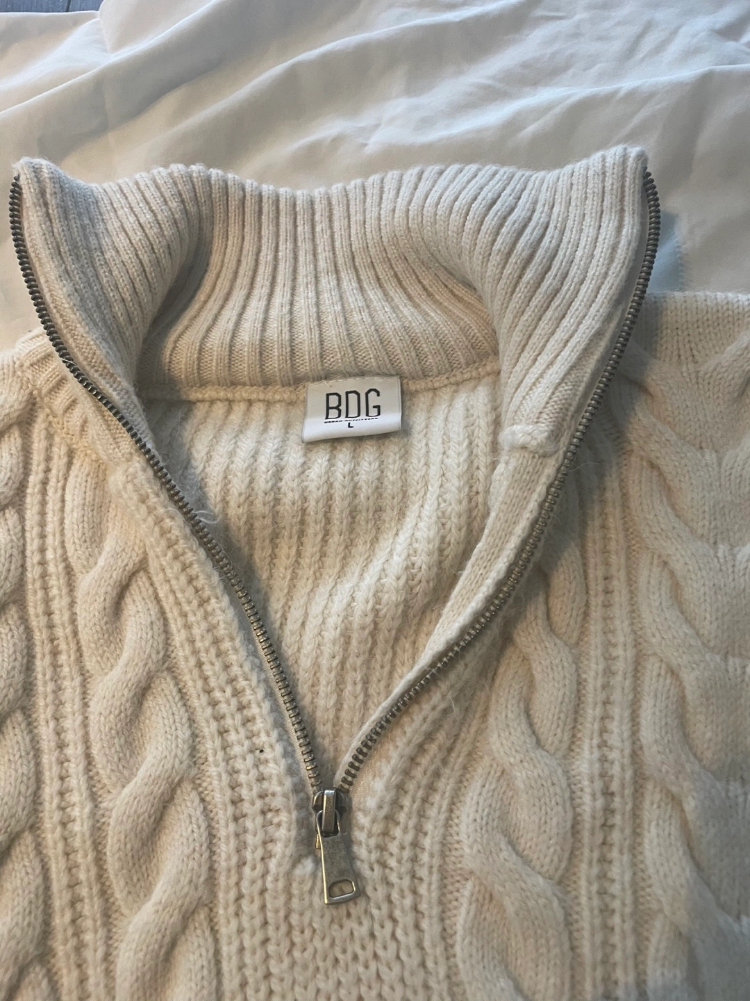 BDG Cream Half-Zip Sweater - Size L