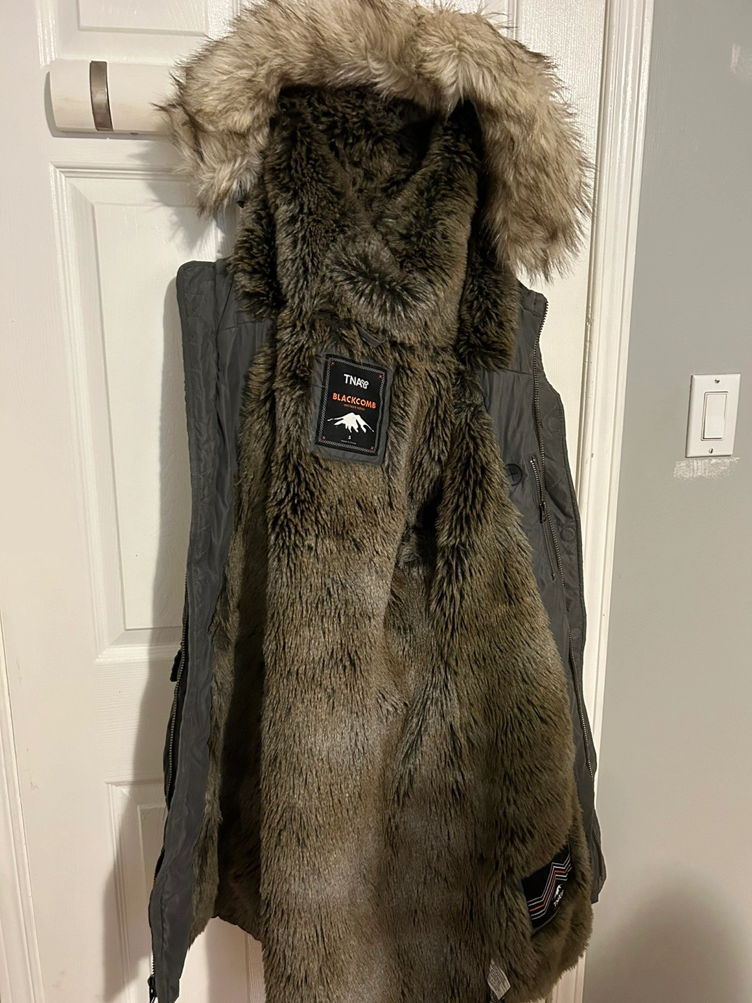 Selling for my sister. Barley used as it was too snug. Worn for less than a handful of times one season and then sat in the closet in a garment bag. Fur in impeccable condition