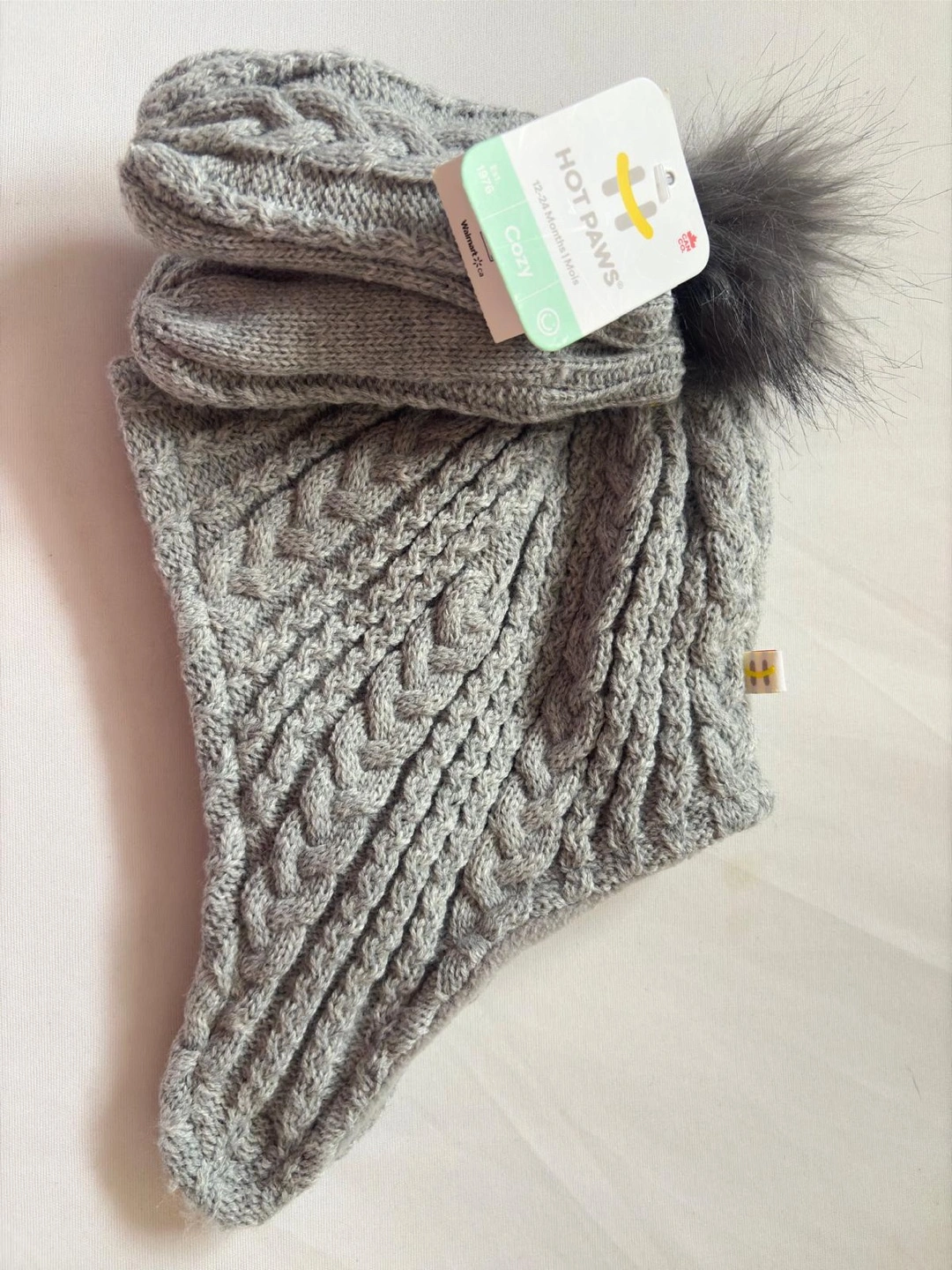 Price is negotiable. Brand new Hot Paws cozy knit hat and mittens set for toddlers aged 12-24 months. Made with soft, high-quality materials to keep your little one warm during the winter. Stylish grey design with cable knit pattern and a cute pom-pom on the hat. Perfect for cold weather or as a gift. Unused and in excellent condition with tags attached.