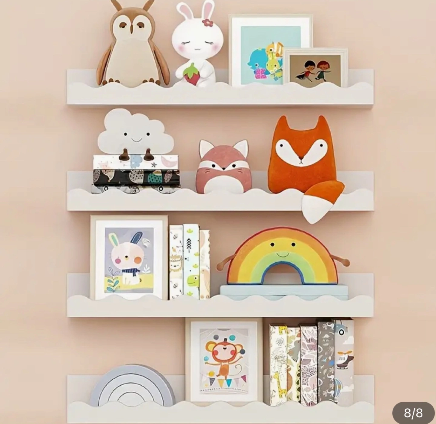 Set of 3 White Floating Shelves with Scalloped Edges ,used