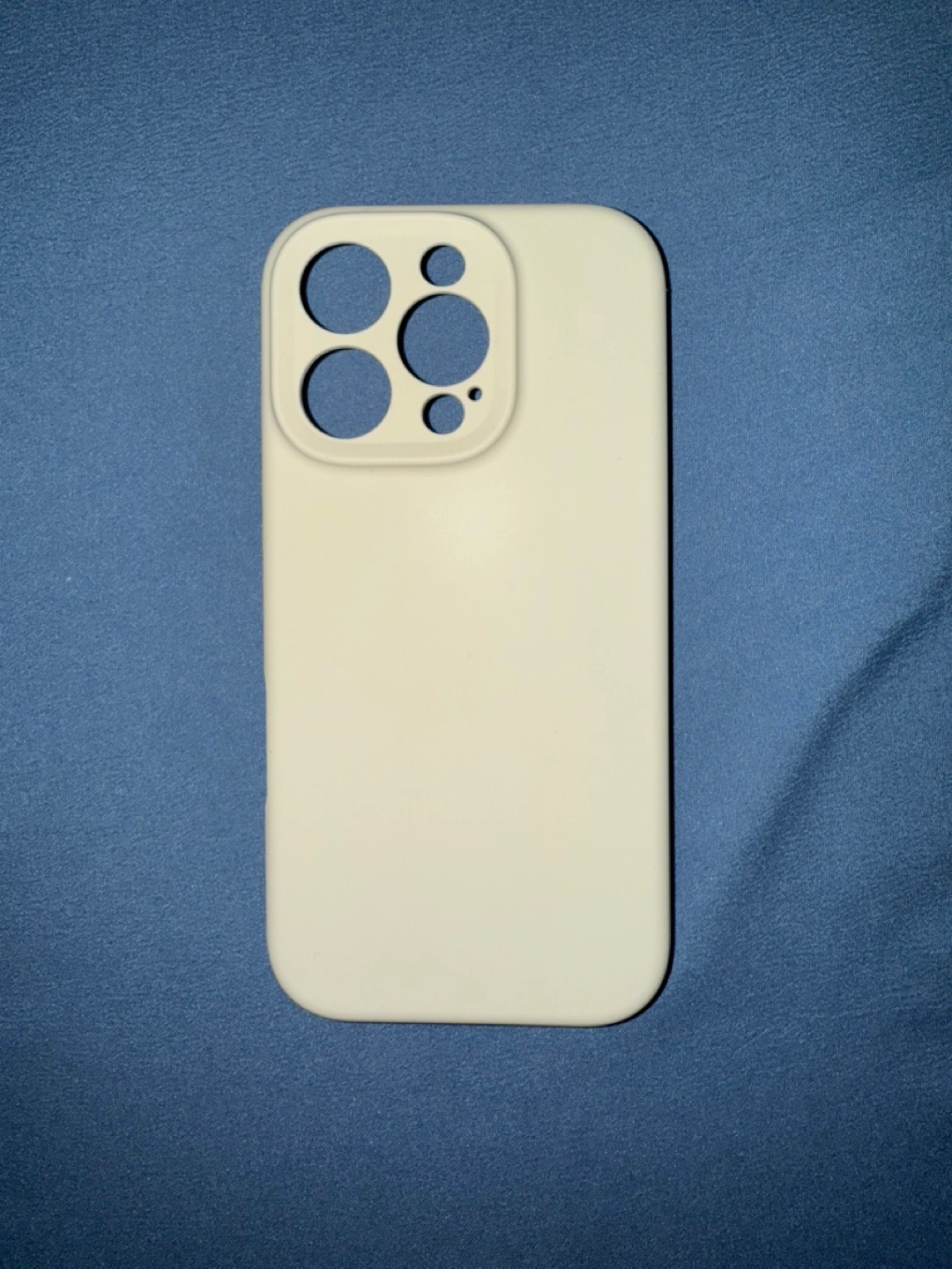 Off-white 7Studios silicone phone case. Designed for iPhone 16 Pro. Provides protection and grip along with Camera Control cutout. Really good grip with soft touch.