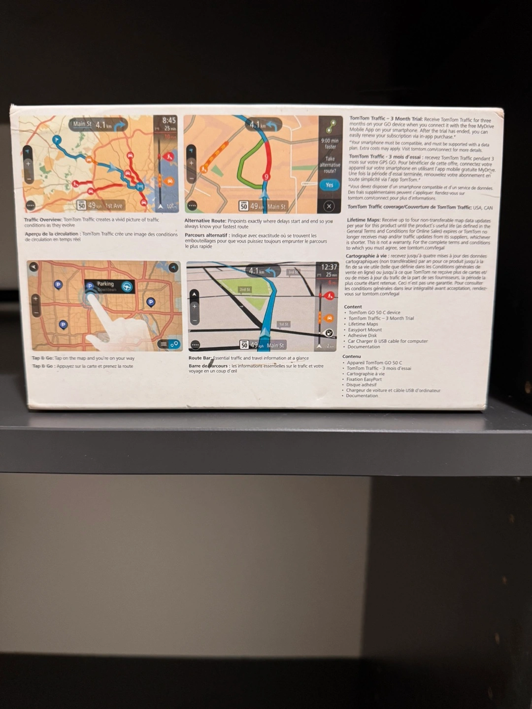 Includes 3-month trial of TomTom Traffic. Features a 5-inch touchscreen. Lifetime maps. Includes USB cable and car mount.