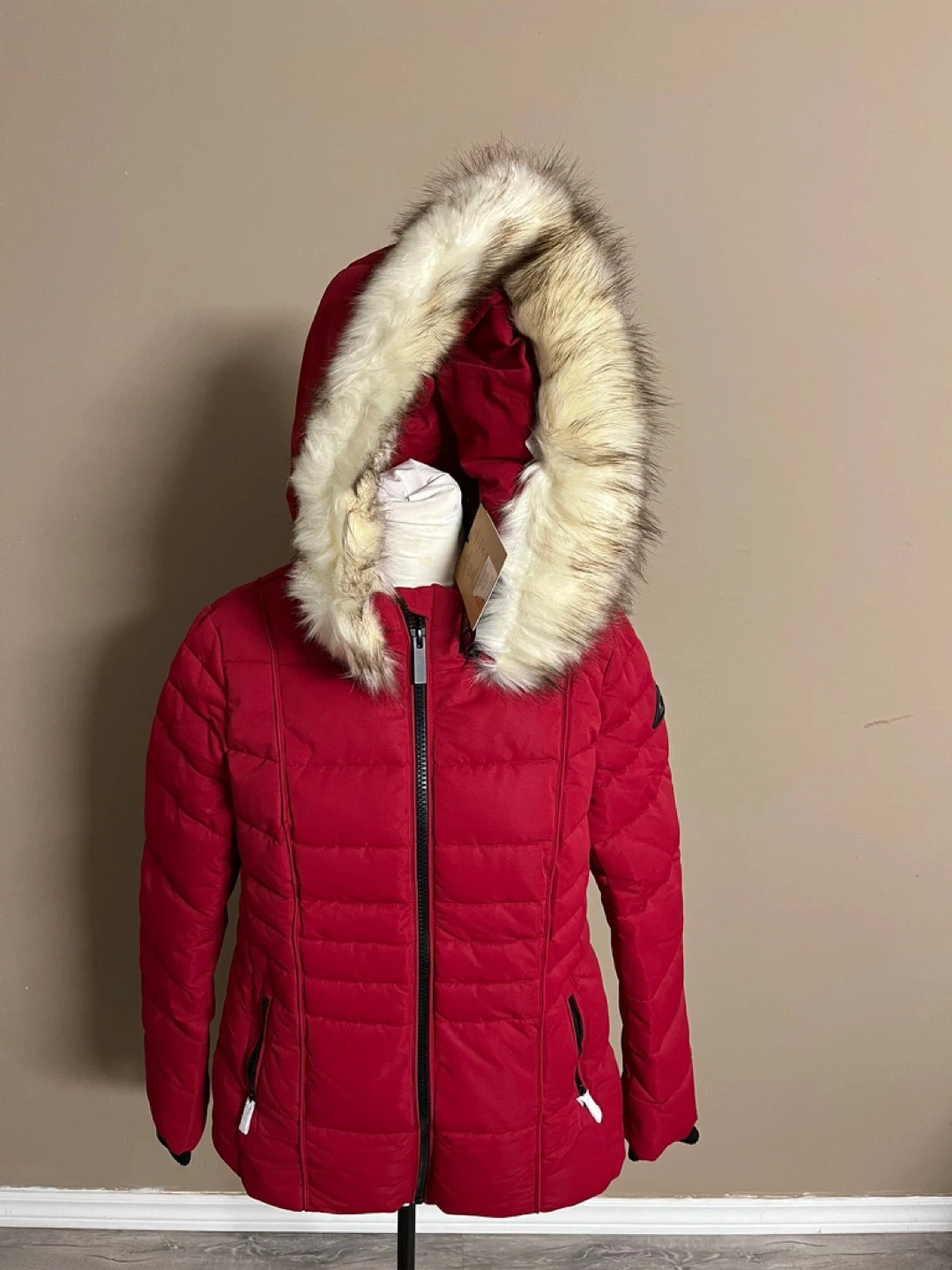 BNWT Red Puffer Jacket with Faux Fur Hood