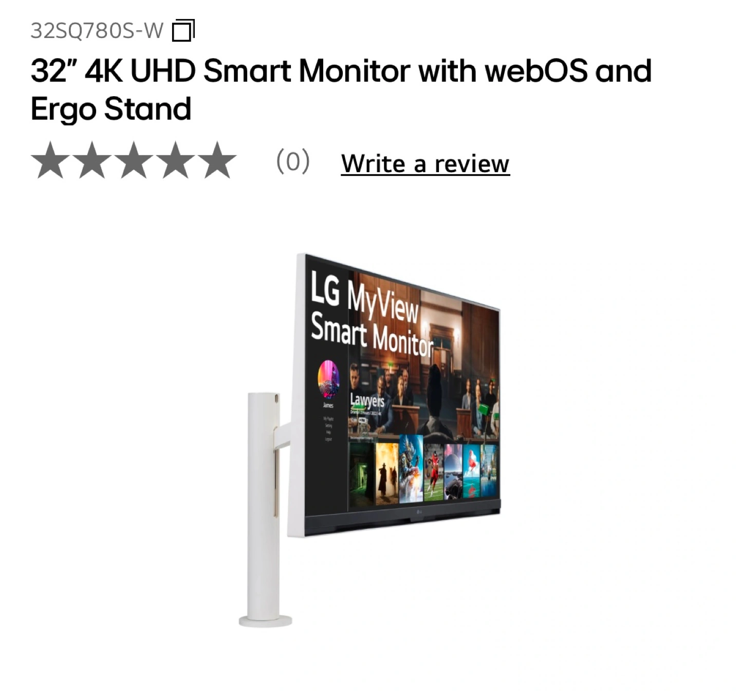 LG 32" webOS Smart Monitor (32SQ780S-W), 4K UHD(3840x2160) Display with Ergonomic Stand,