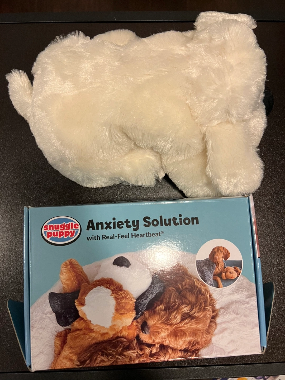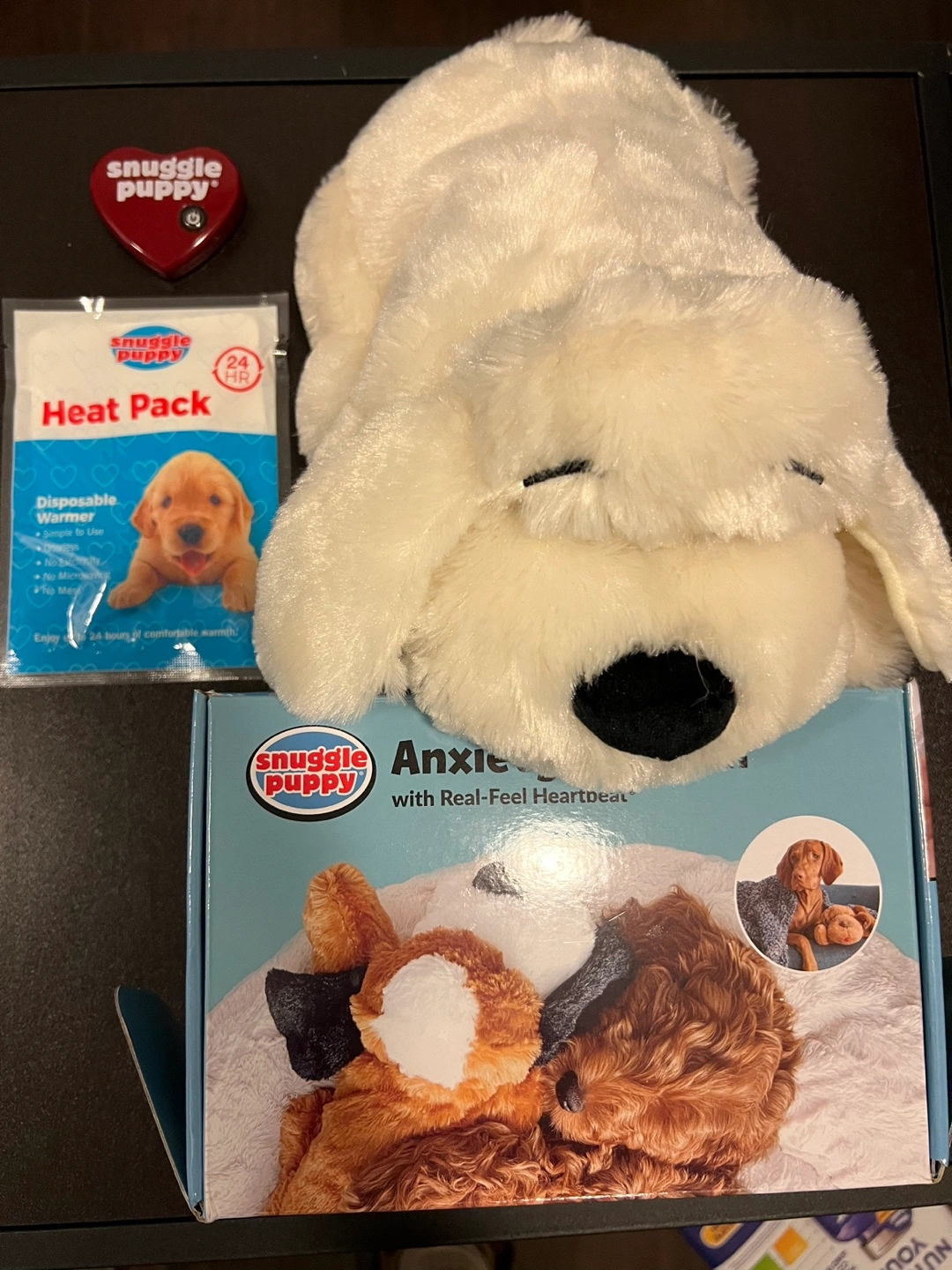 •'Real-feel' pulsing heartbeat and heat source mimic being part of a pack, calming by appealing to natural instincts