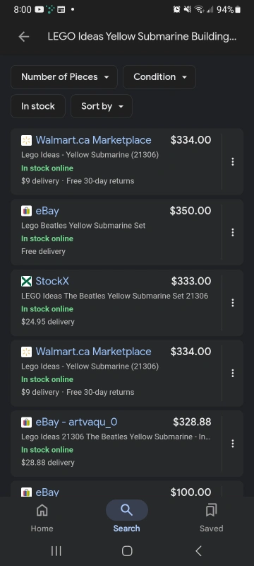 Complete LEGO Yellow submarine set. Includes all pieces, instructions, and minifigures. Yellow Submarine model. Box included.