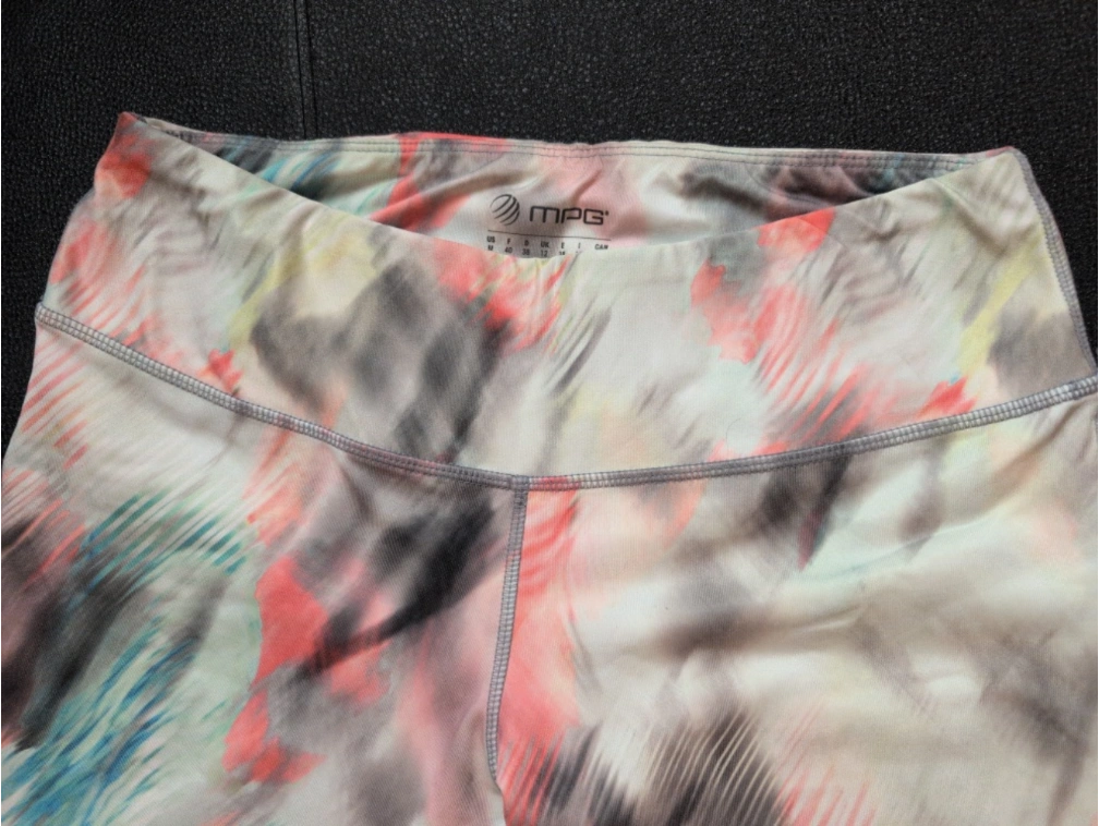 Women's athletic capris. Size medium. Colorful abstract print. Back zipper pocket. Excellent condition.