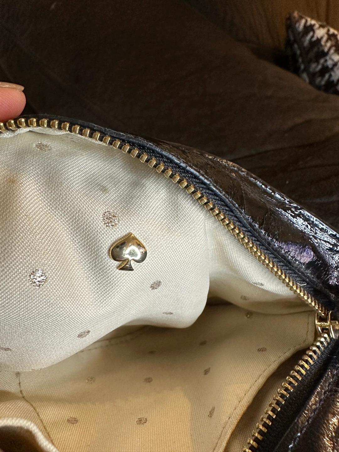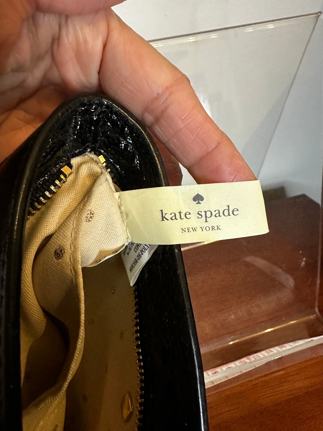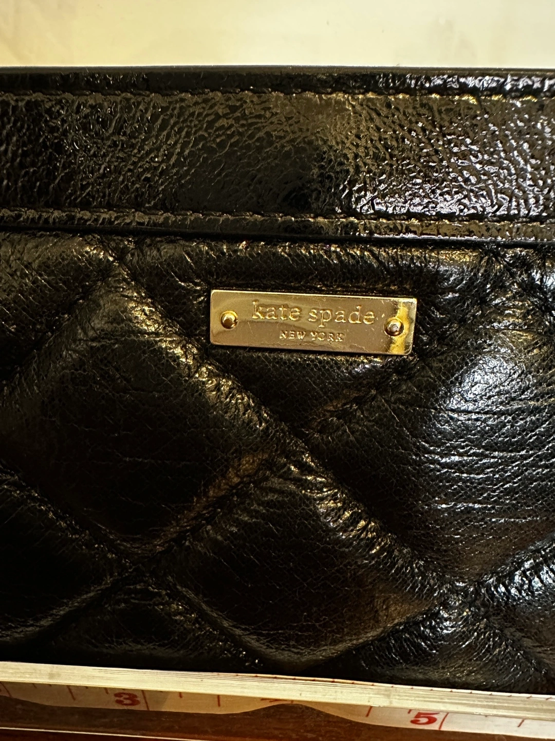 Pre-loved Black quilted 100% cow leather wristlet. Features goldtone hardware and a zip closure. Small enough for essentials. From a smoke-free home.
