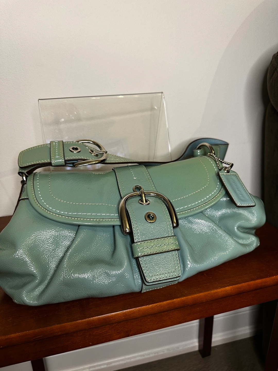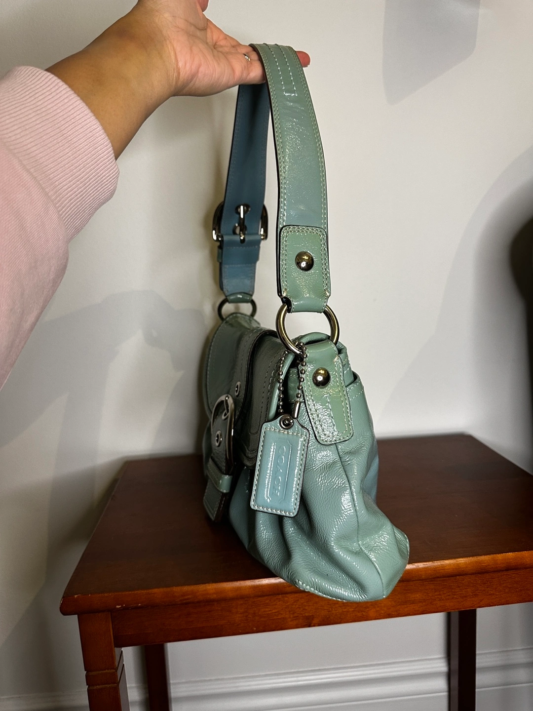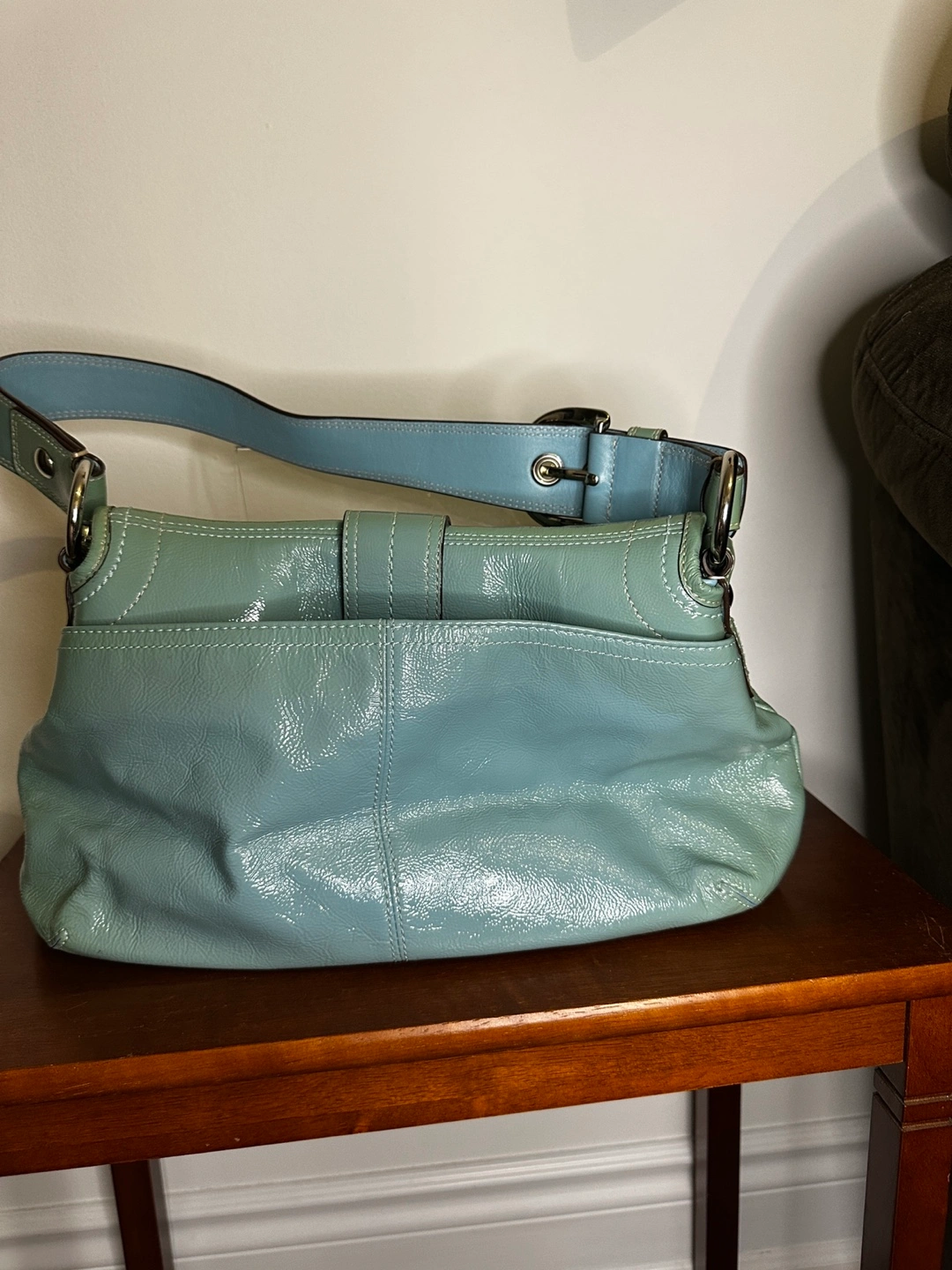 Coach Light Blue Patent Leather Shoulder Bag