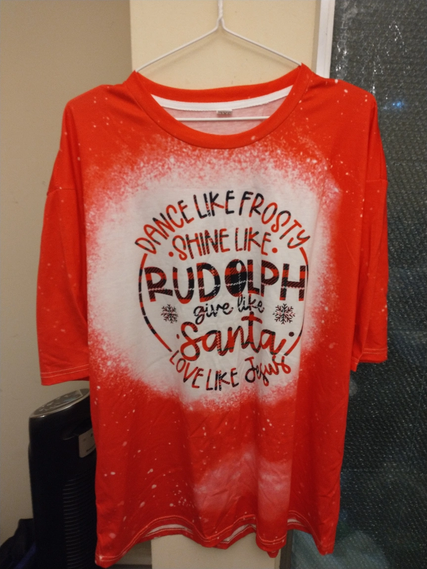 NEW!! BRIGHT RED CHRISTMAS T-SHIRT! NEVER WORN, LENGTH 30 INCHES, CHEST 24 INCHES. SEE PHOTOS.