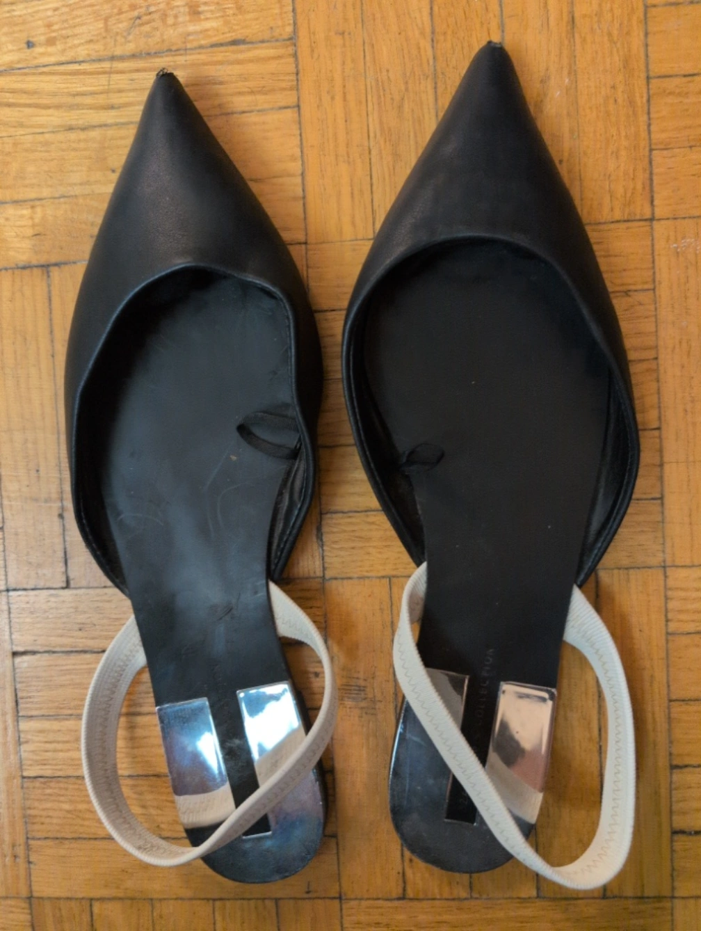 Zara Black Pointed-Toe Slingback Flats Size 40
