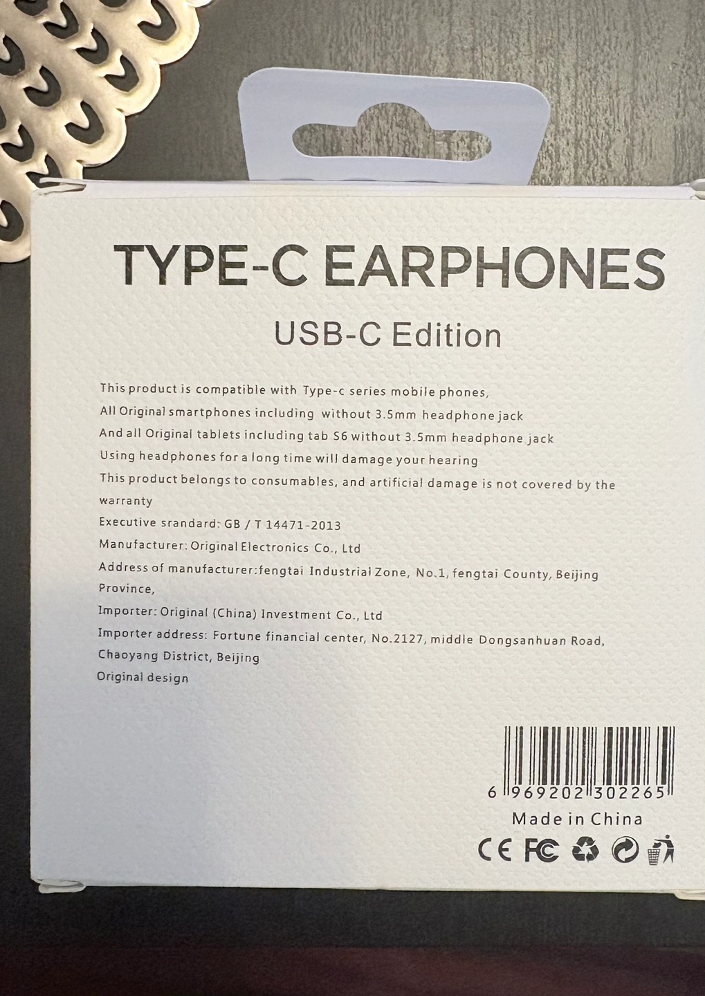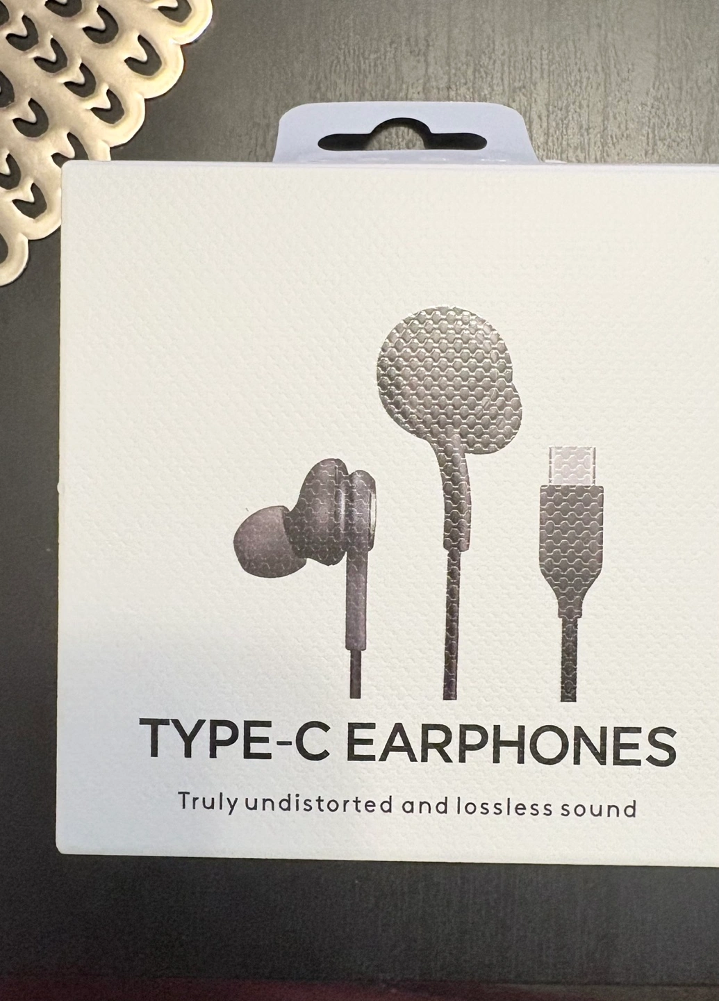 USB-Type C wired earphones. New/Unopened, sealed in packaging.