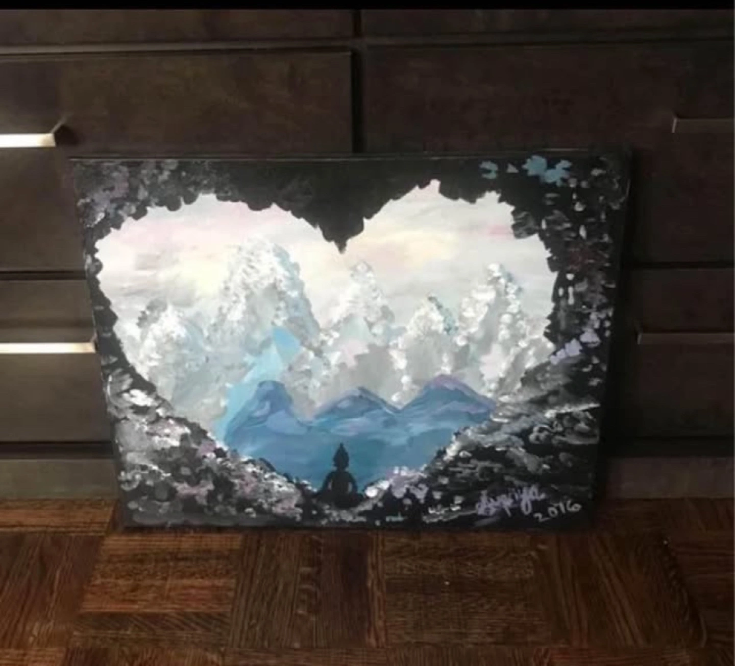 1000+Blue Ice Abstract $8 Preloved and in great condition Will look great in the yoga/meditation room Size 16”x20” Please refer to pics for sizing Beautiful colour combination abstract All it needs is a wire or string with 2 small nails Can be hung or placed on a table Pickup near wonderland