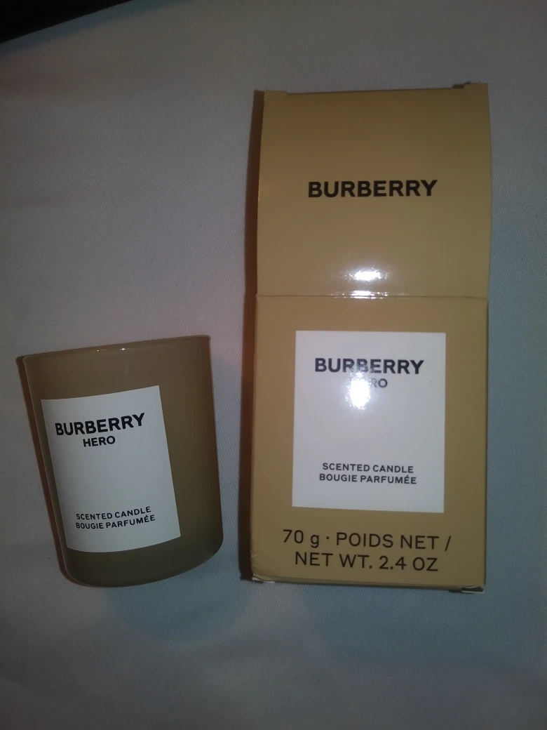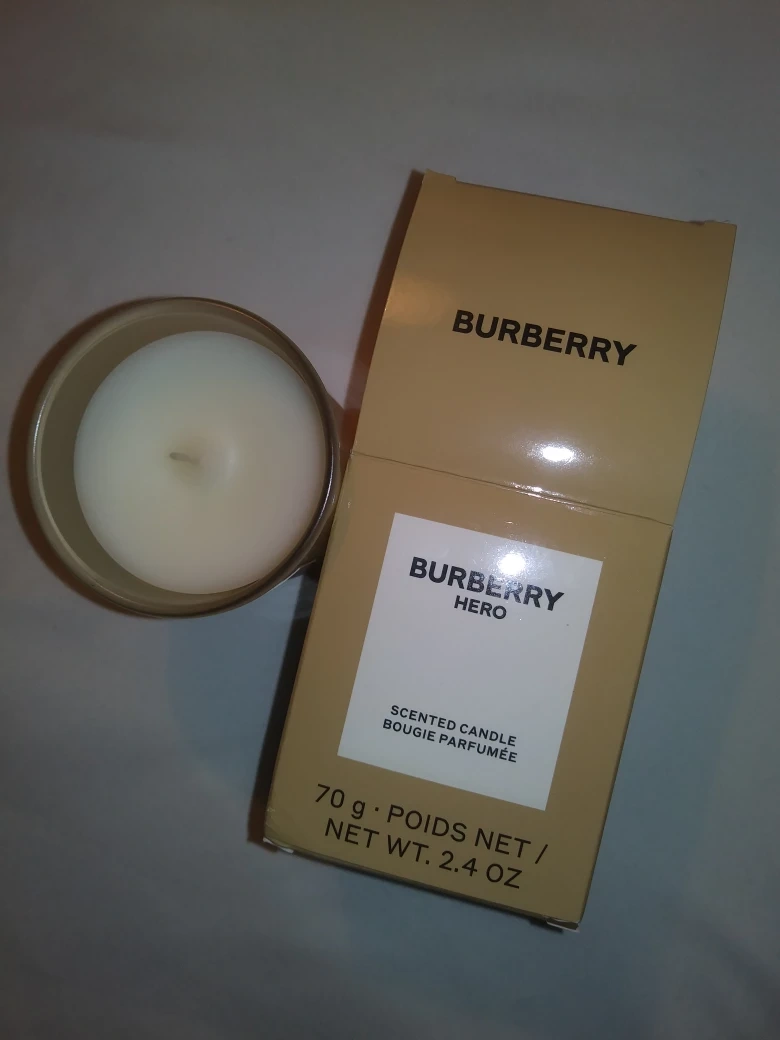 1000+New Burberry Hero scented candle. 70g / 2.4 oz. Beige coloured glass jar with matching box. Perfect gift.