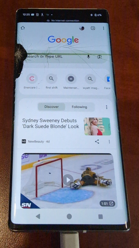 Google Pixel 6 Pro works perfectly and has 128GB of storage but has a cracked screen .