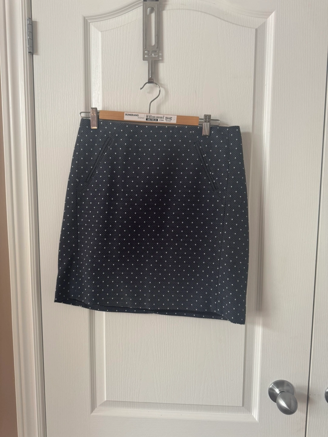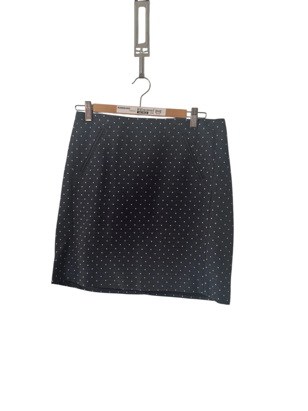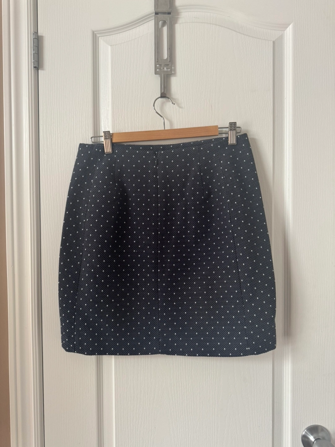 Dark grey mini skirt. Polka dot pattern. Close-fitting. Zipper closure. Side pockets. Excellent condition.