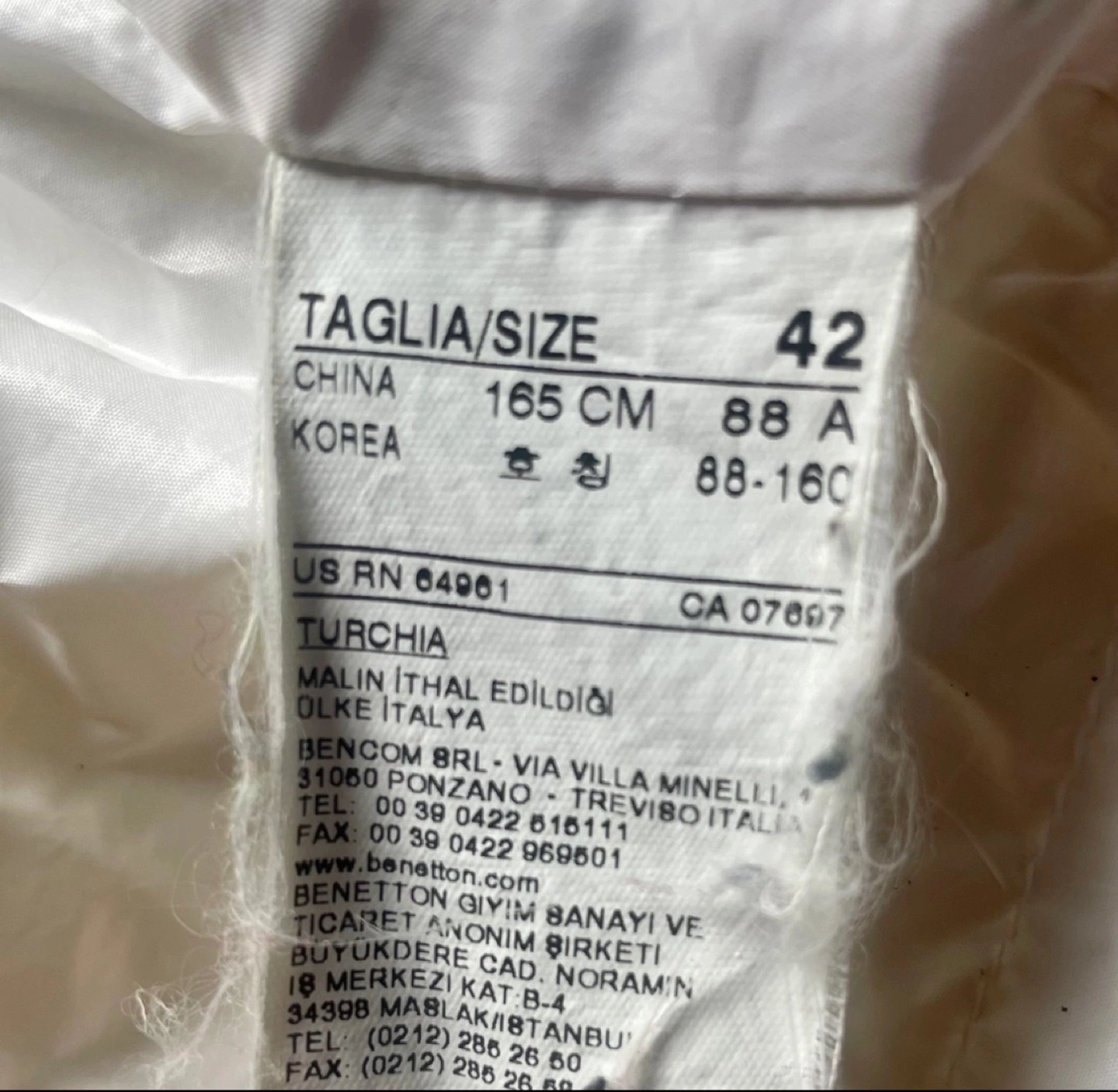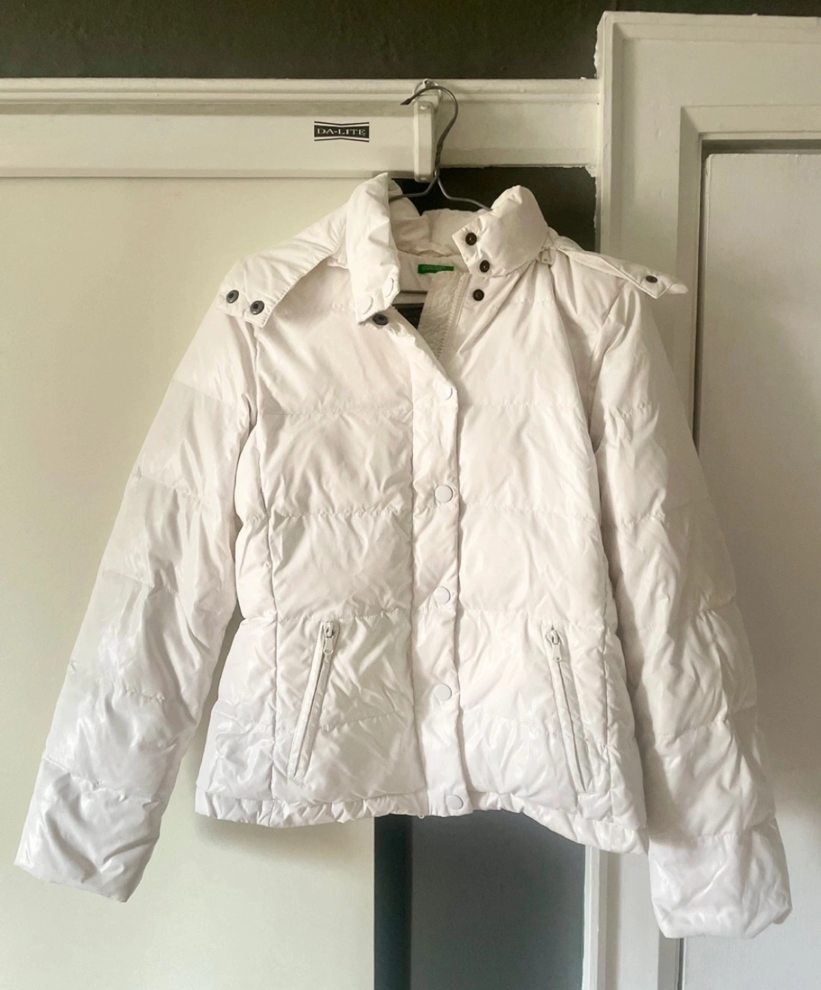 Authentic down jacket purchased from United Colors of Benetton store in Europe years ago — I needed a coat and wore it for the 3 weeks of travel then stored in back of closet till now. It kept me very warm and packs extremely well. A great cold weather daily jacket.