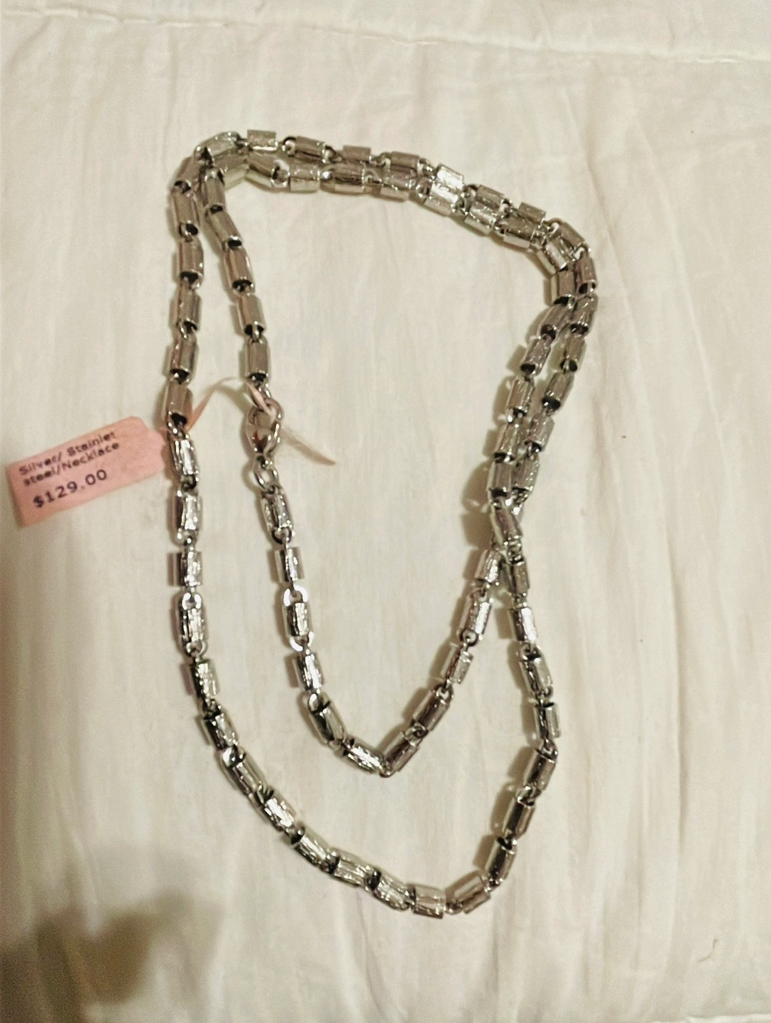 New, with tag attached & box US Price $129.00. High Quality Stainless steel necklace with unique chain of small, rectangular links. ** Last one. Great Valentines.