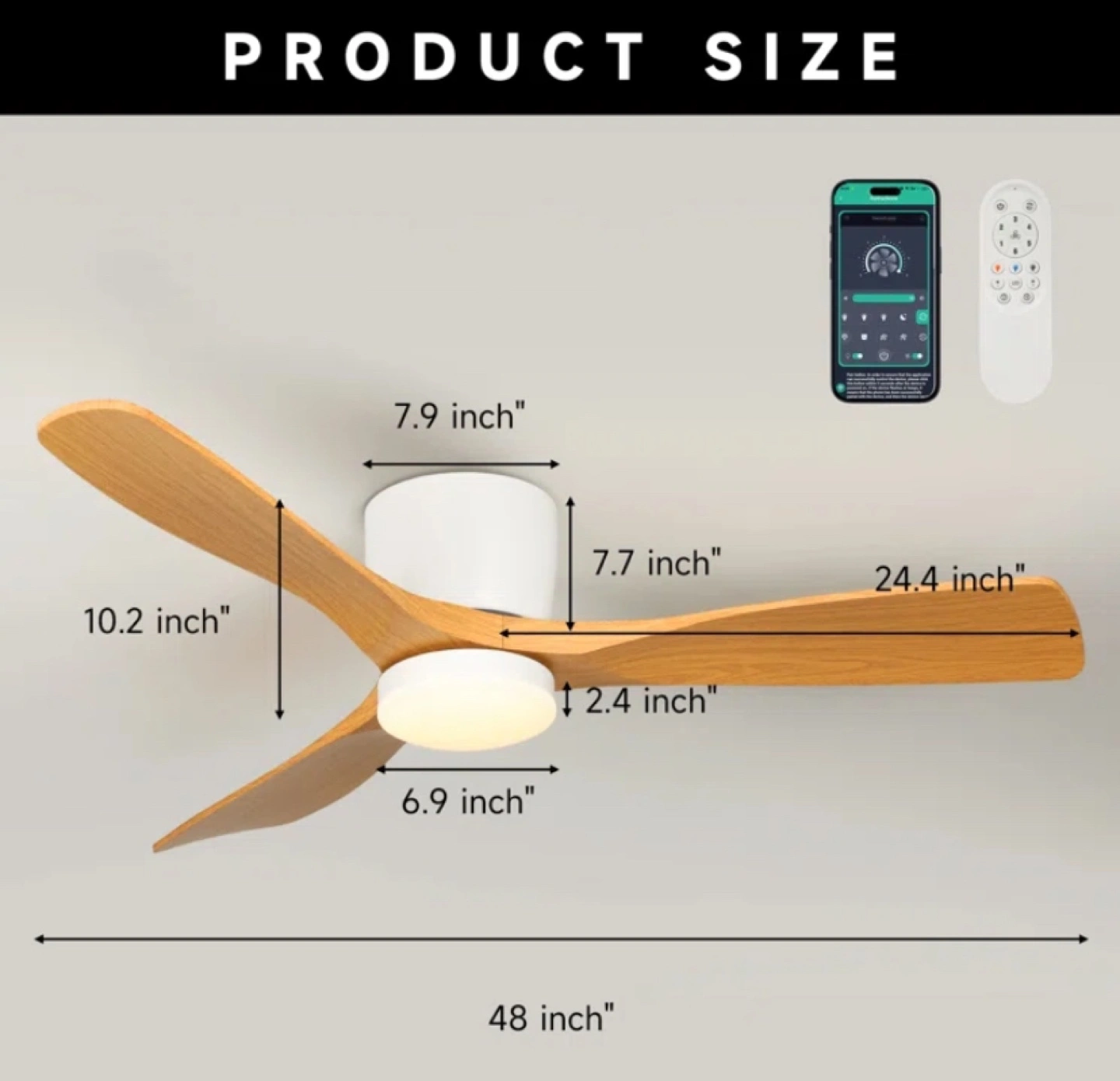 What is more, the ceiling fans have powerful reversible DC motors, which can cool the room in summer and move the airflow in winter. It also can be compatible with a remote and an app (Bluetooth).
