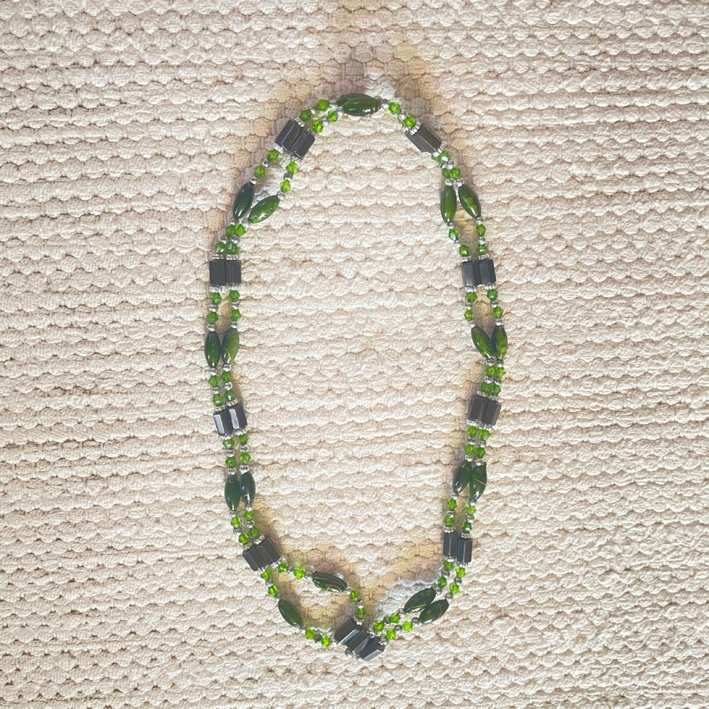 Hematite & Green Glass Beaded Necklace,Bracelet,Coin Purse